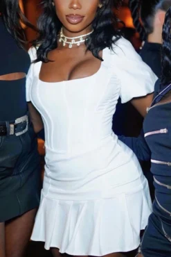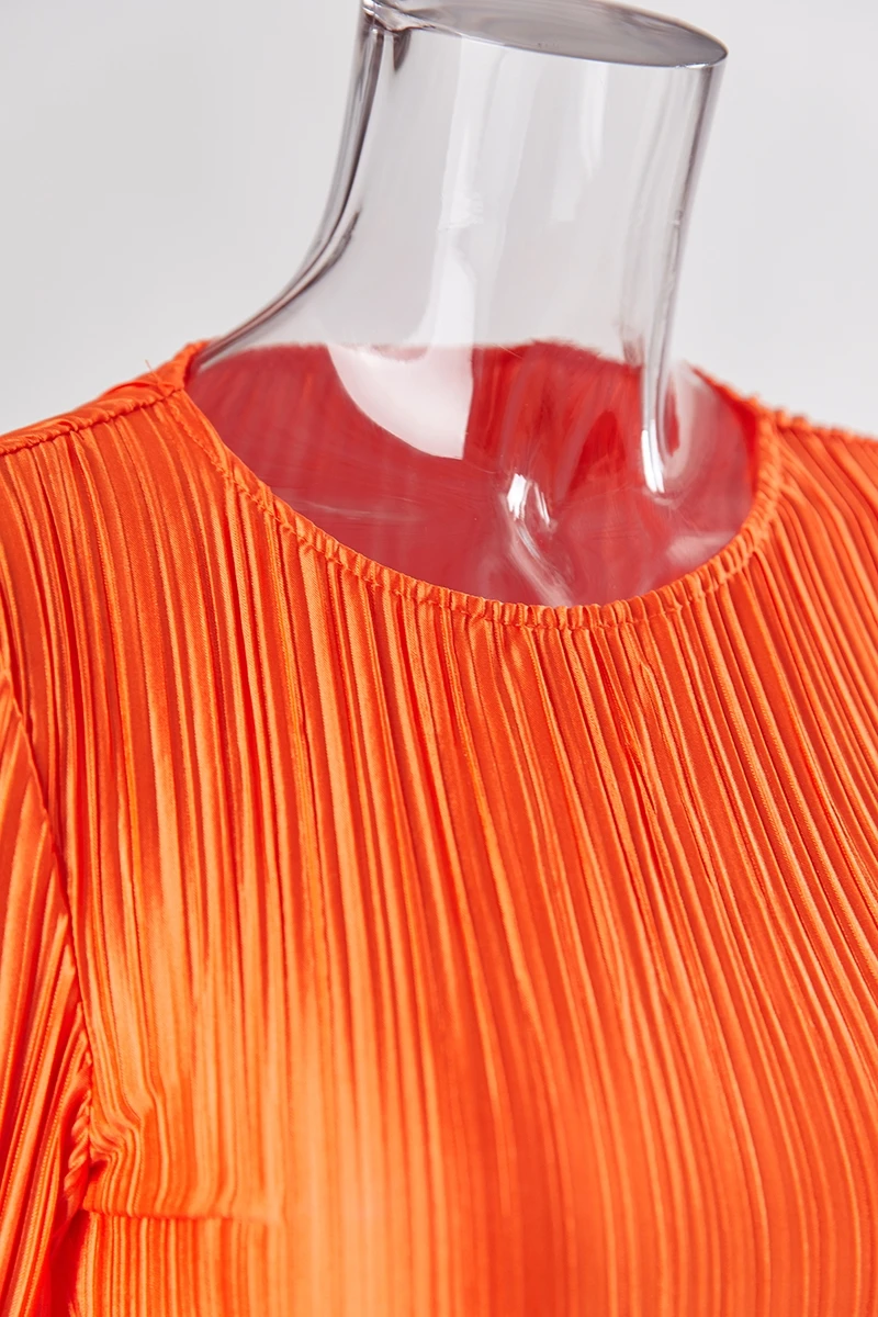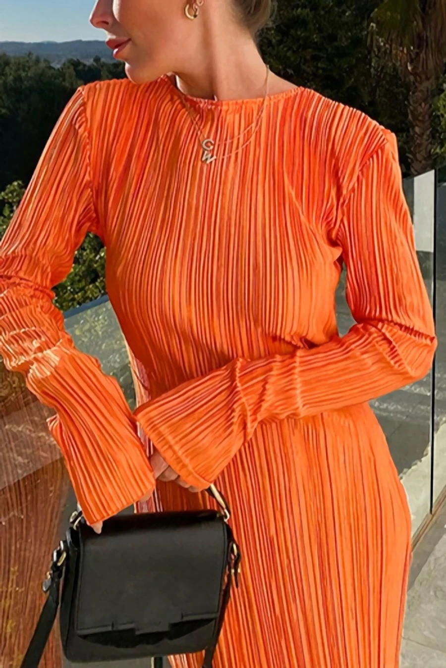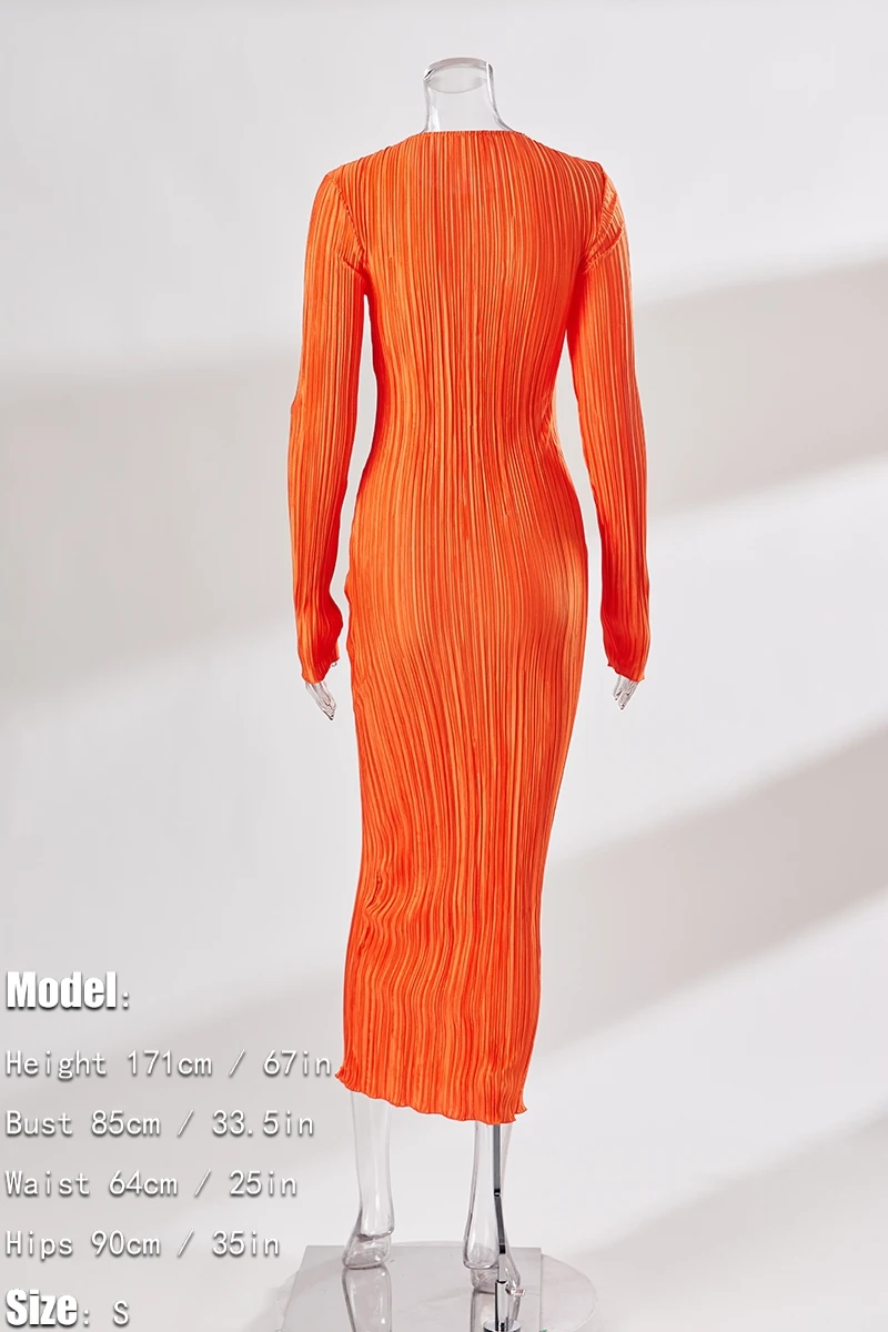 Autumn new 3 colors slight stretch long sleeve pleated stylish casual slim midi dress