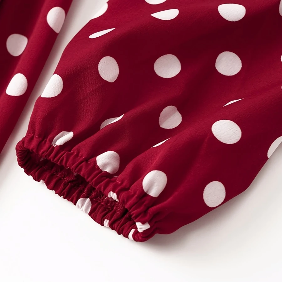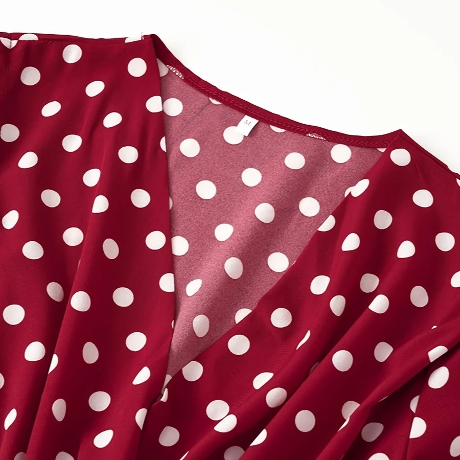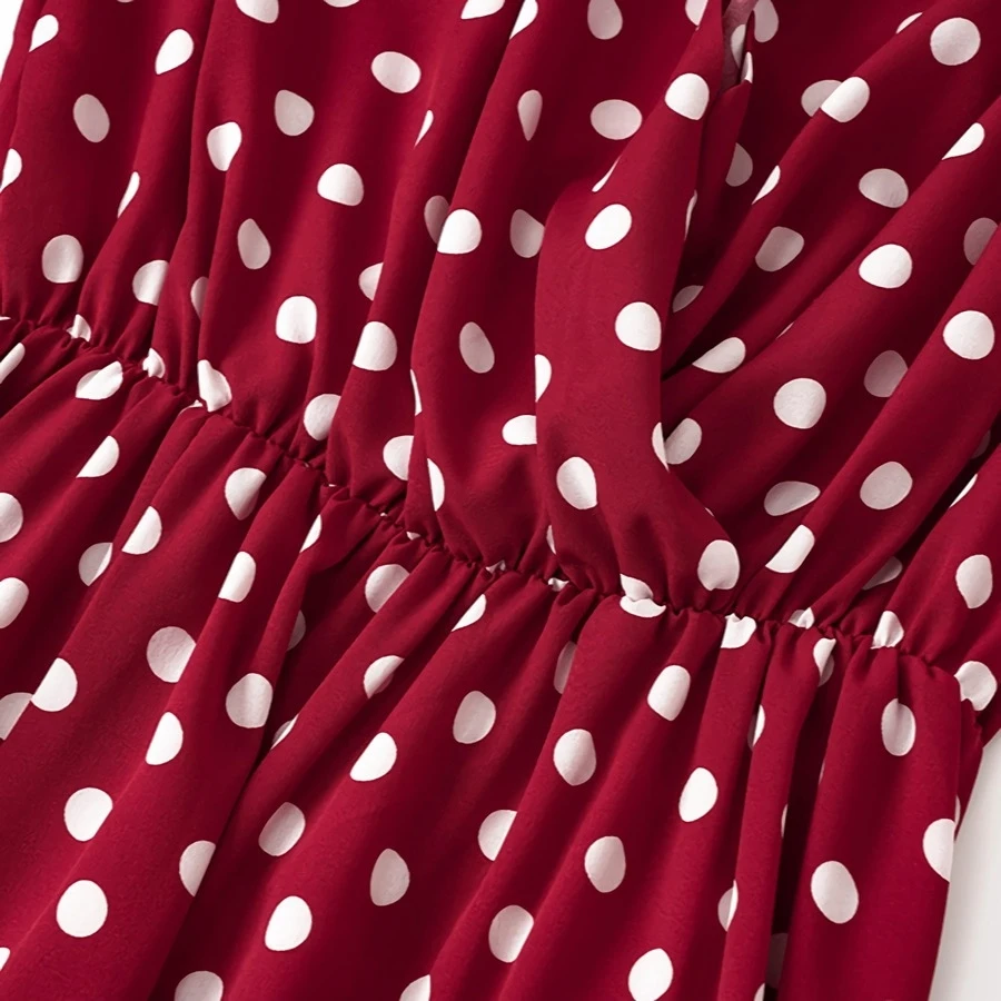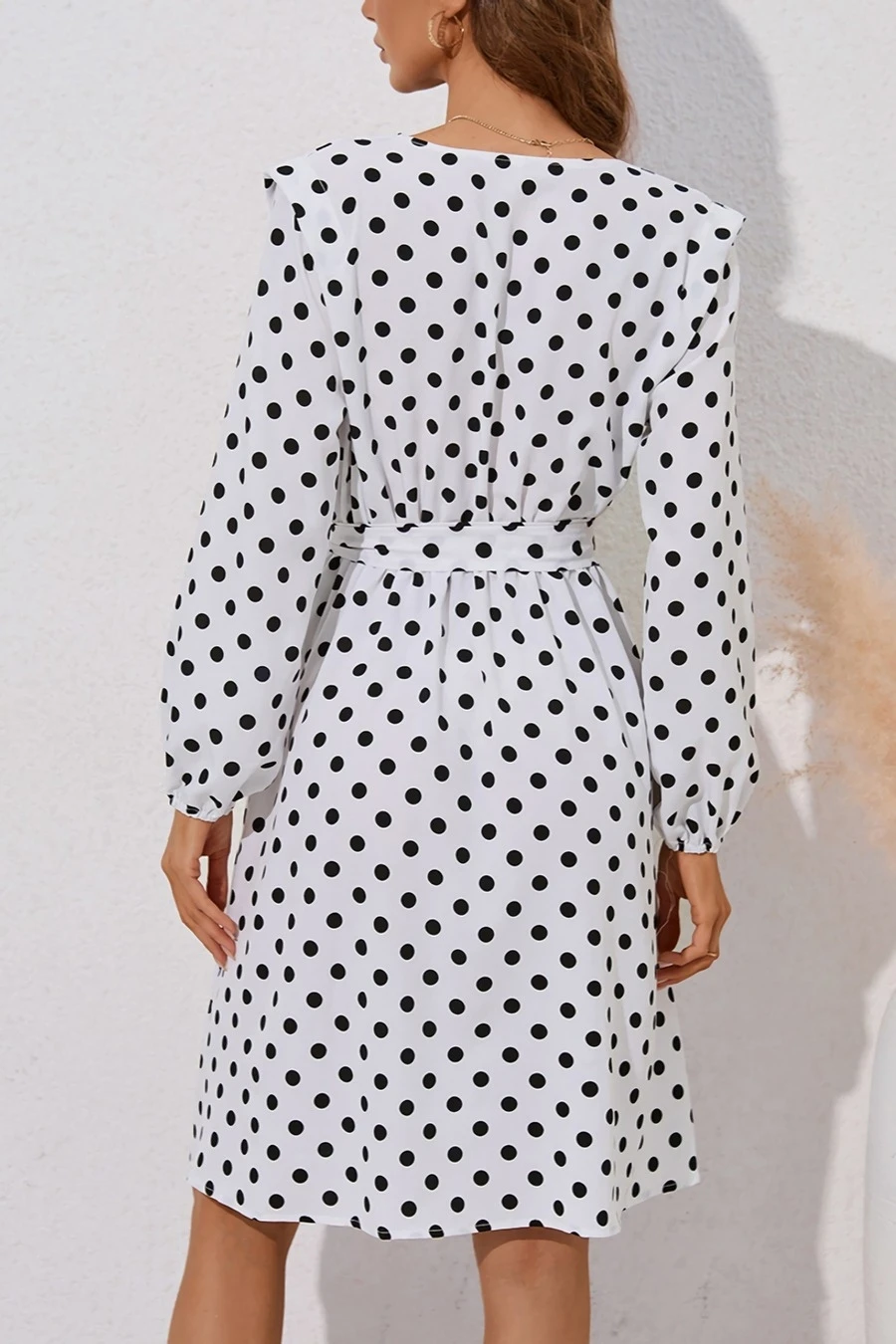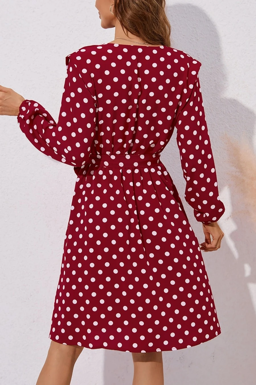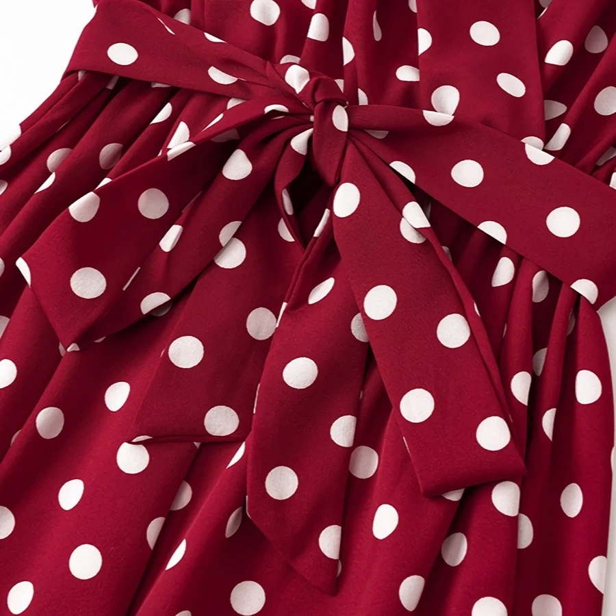 Autumn new plus size 2 colors polka dot batch printing slight stretch long sleeve v-neck lace up slit stylish casual midi dress (with belt)