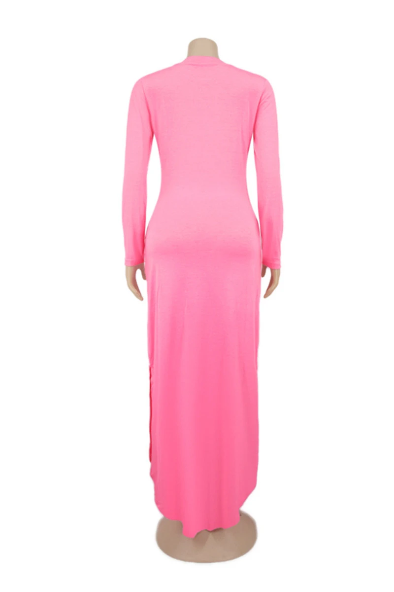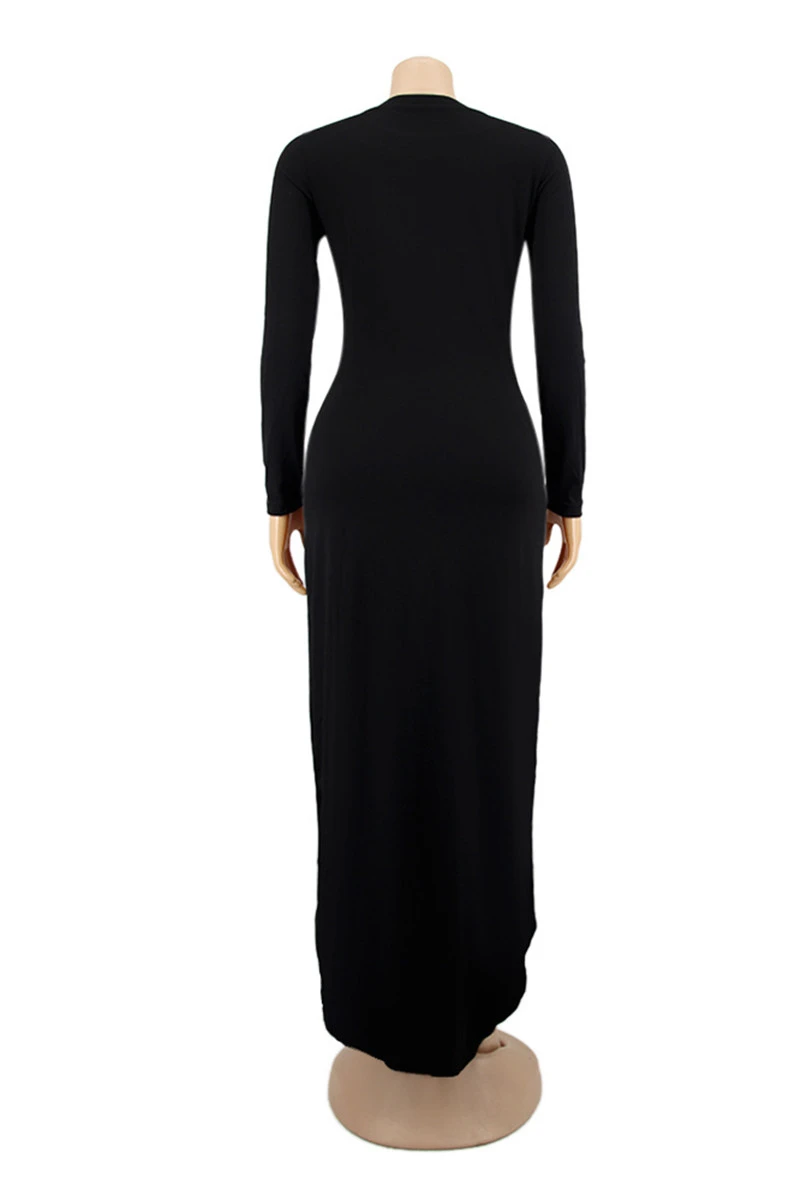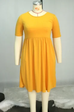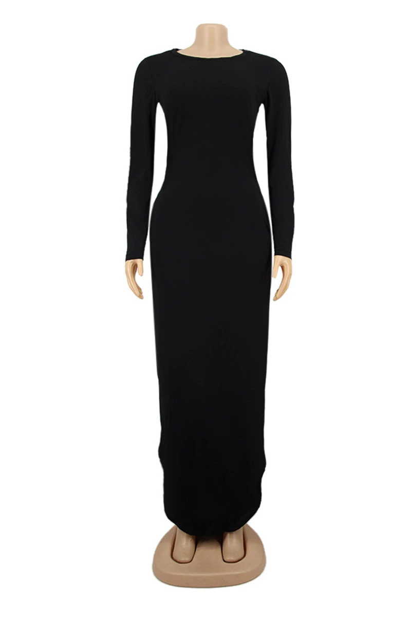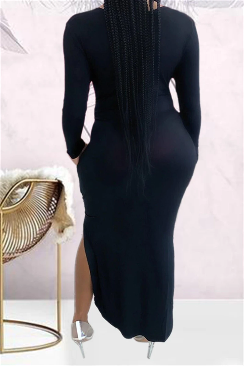 Autumn new plus size solid color stretch round-neck side slit pockets stylish dress