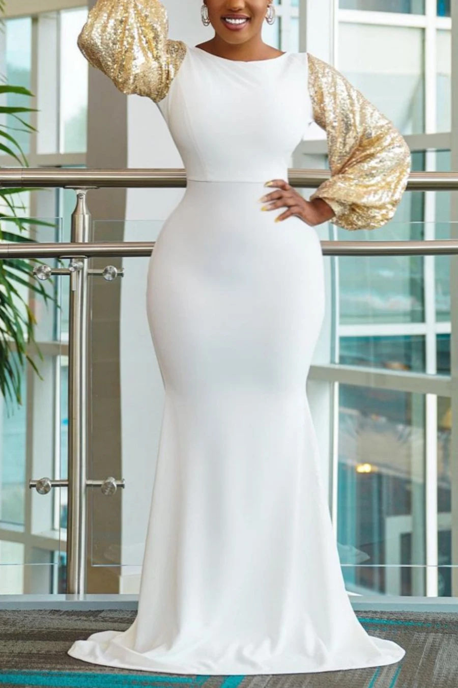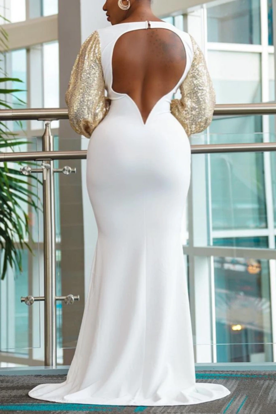 Autumn new sequin decor stretch backless elegant fishtail maxi dress