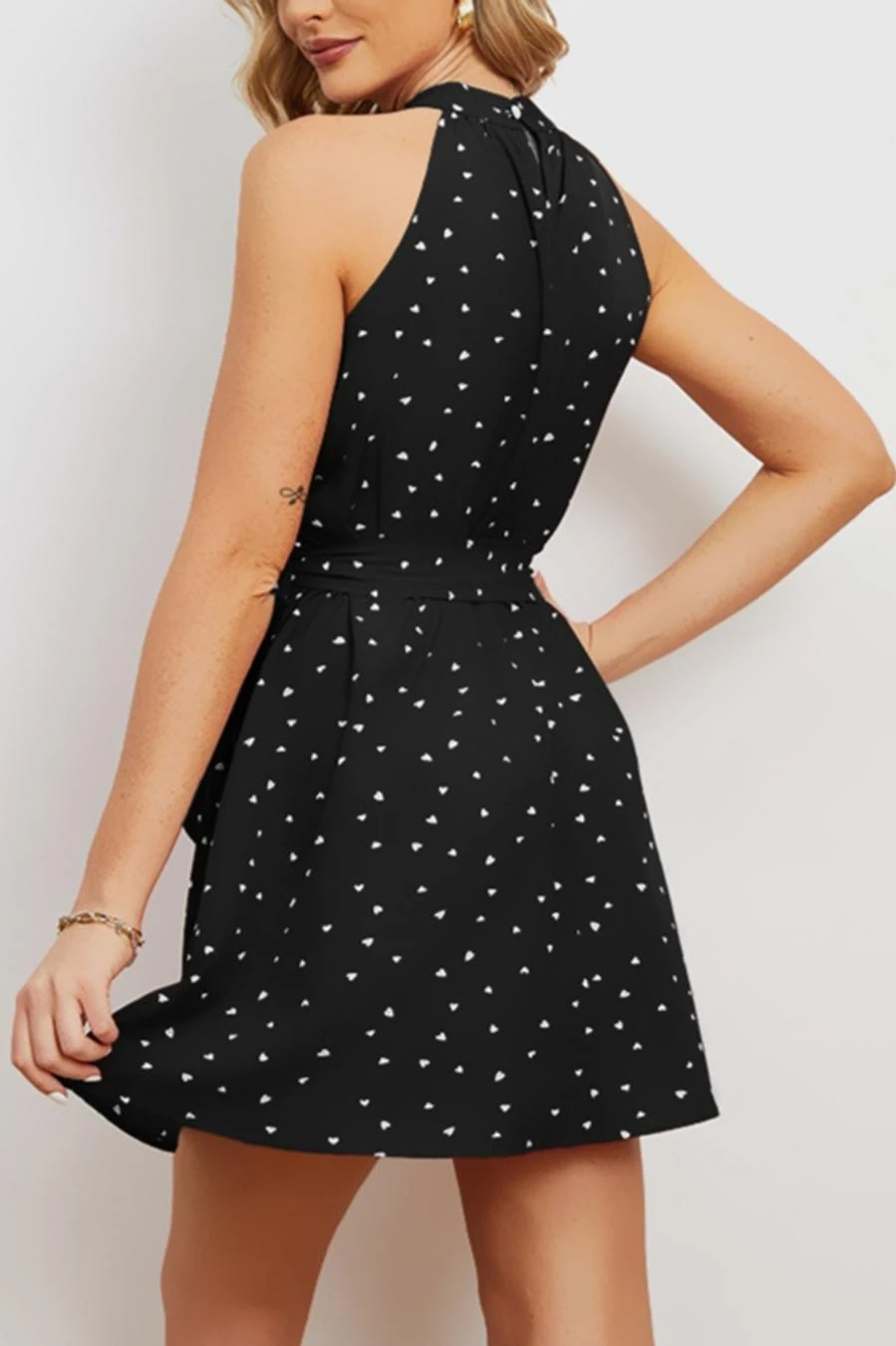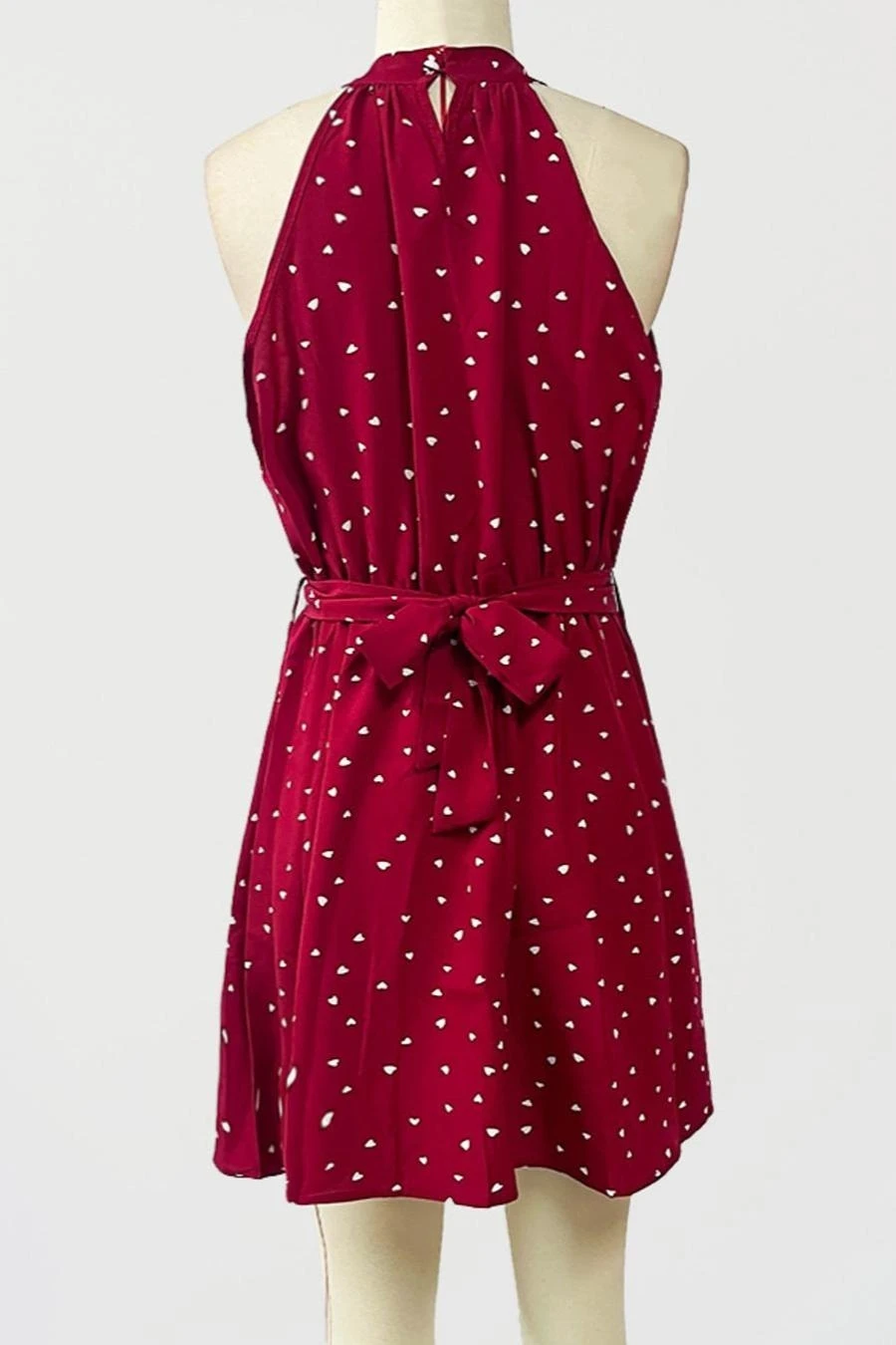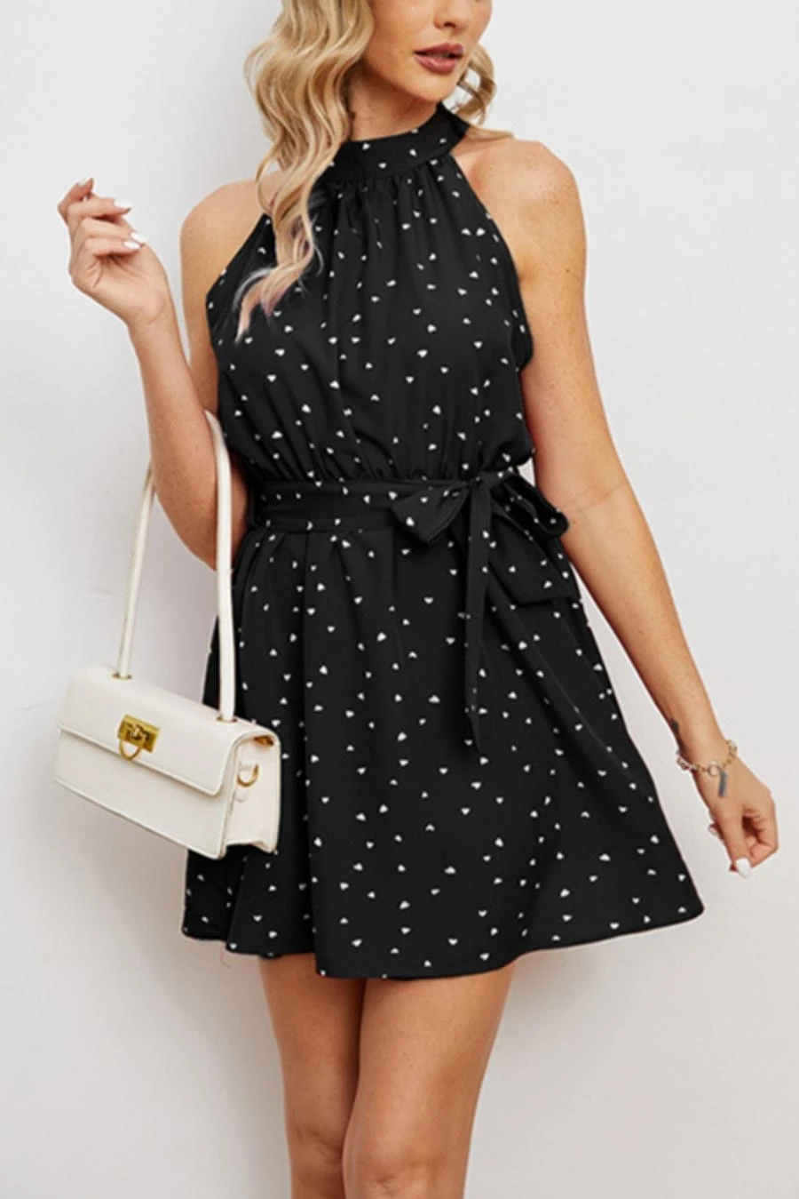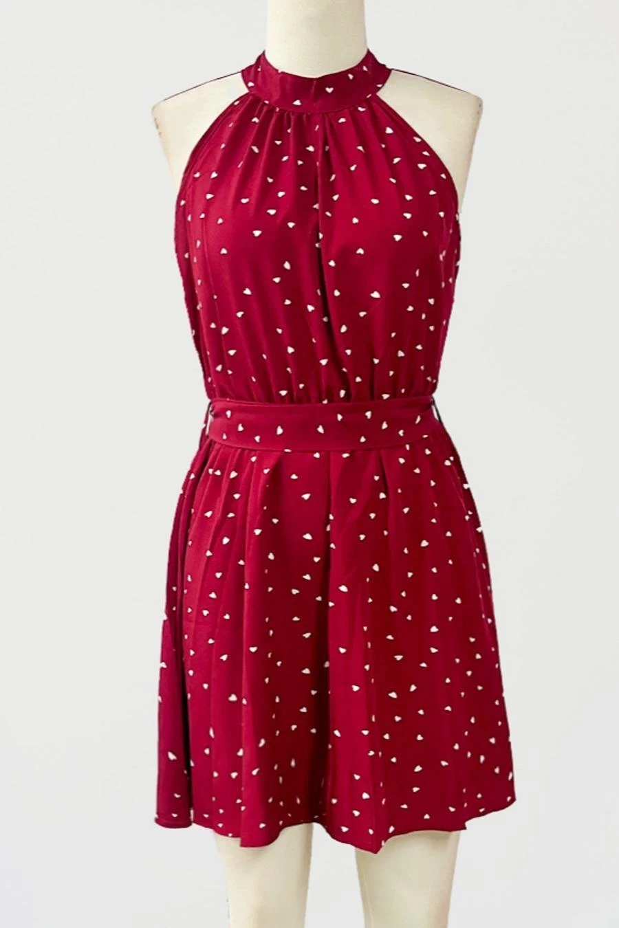 Casual non-stretch heart batch printing sleeveless with belt mini dress