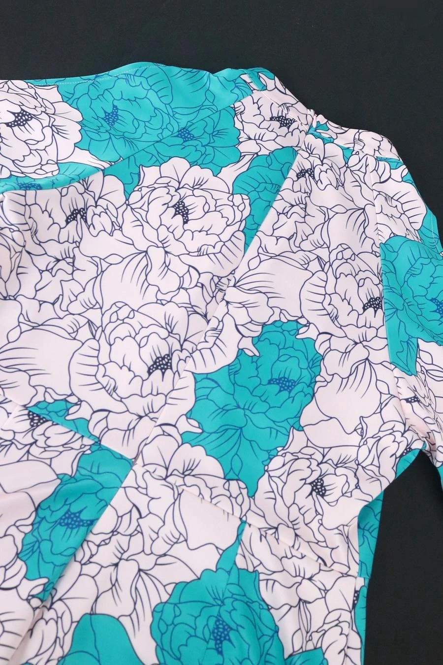 Casual plus size slight stretch flower batch printing hollow slit midi dress