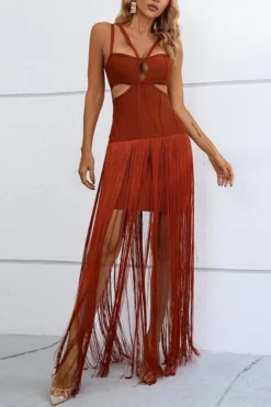 High stretch Solid Color Sling Tassel Hollow Zip-up Slim Sexy Mini Dress Wholesale Cut Out Dresses