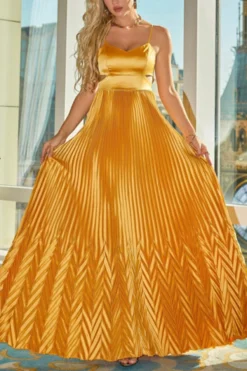 Elegant Slight Stretch Solid Hollow Pleated Maxi Dress Wholesale