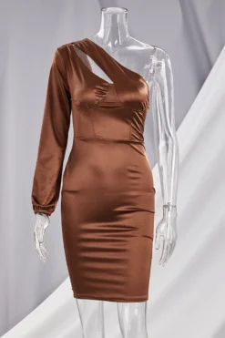 Elegant Slight Stretch Letter Sequin Decor Padded One Shoulder Hollow Maxi Dress Wholesale
