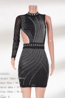 High stretch Sling Rhinestone Zip-up Hollow Solid Color Sexy Hot Mini Dress Wholesale