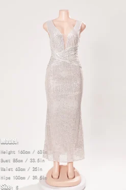 Elegance Extra Small Inelastic Sequin Deep Vparty Maxi Dress Wholesale Elegant&OL Dresses