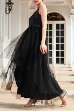 Elegant Non-stretch Irregular V-neck Maxi Evening Dress Wholesale Tank & Cami Dresses