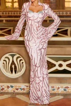 Elegant High Quality Slight Stretch Sequin Decor Padded Maxi Dress Wholesale
