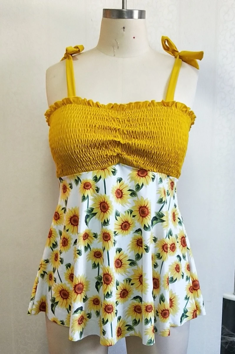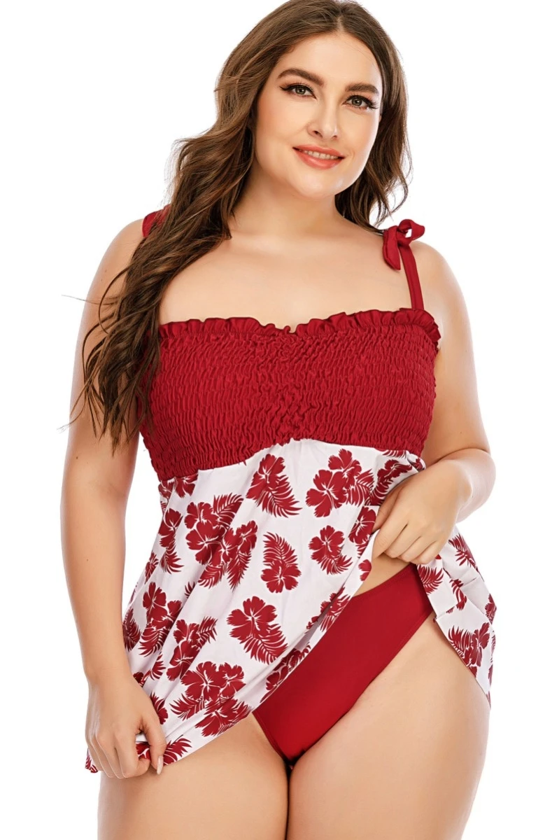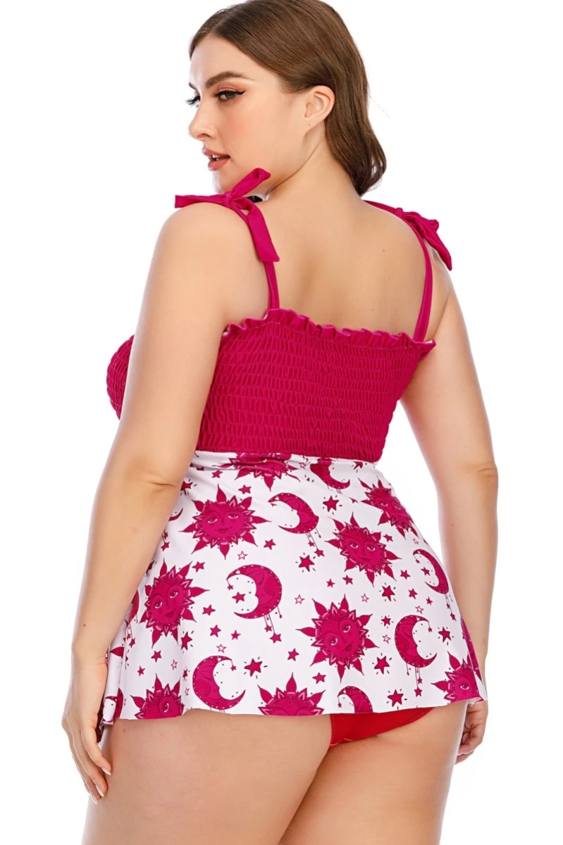 Oversize digital print padded pleated sling dress style stylish two-piece swimsuit