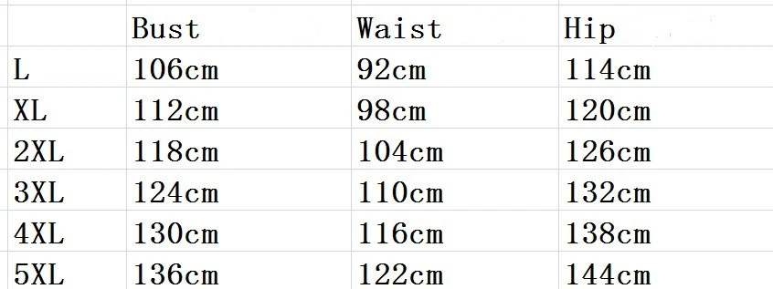 | SIZE | L, XL, XXL, 3XL, 4XL, 5XL |