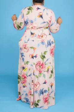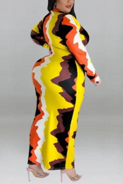 XL-5XL Plus Size Elegant V-neck Zip-up Stitching Mesh Slight Stretch Maxi Dress Wholesale