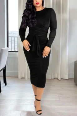 Winter New Stylish Velvet Solid Color Slight stretch Belt Plus Size Casual Midi Dress Wholesale