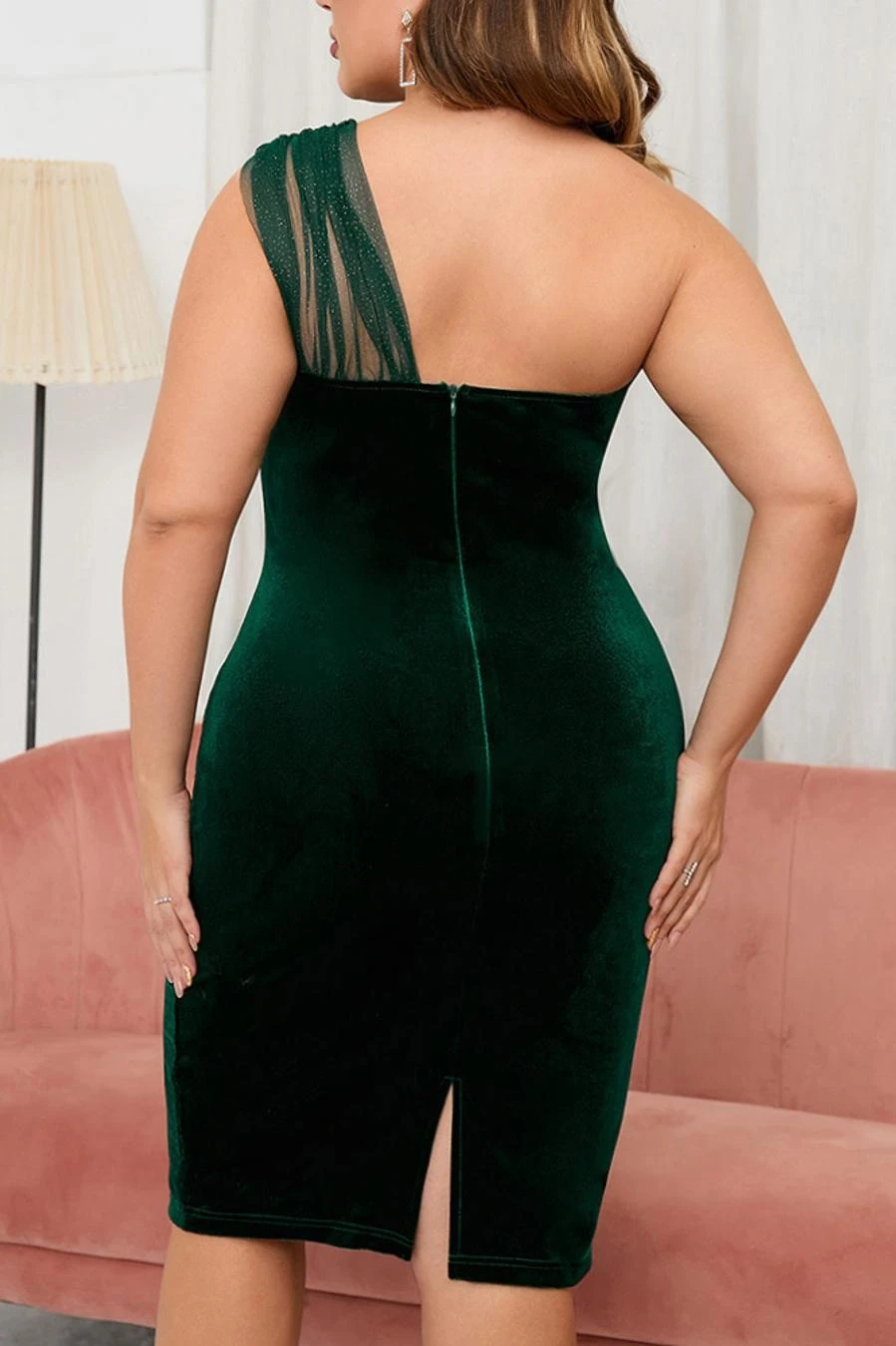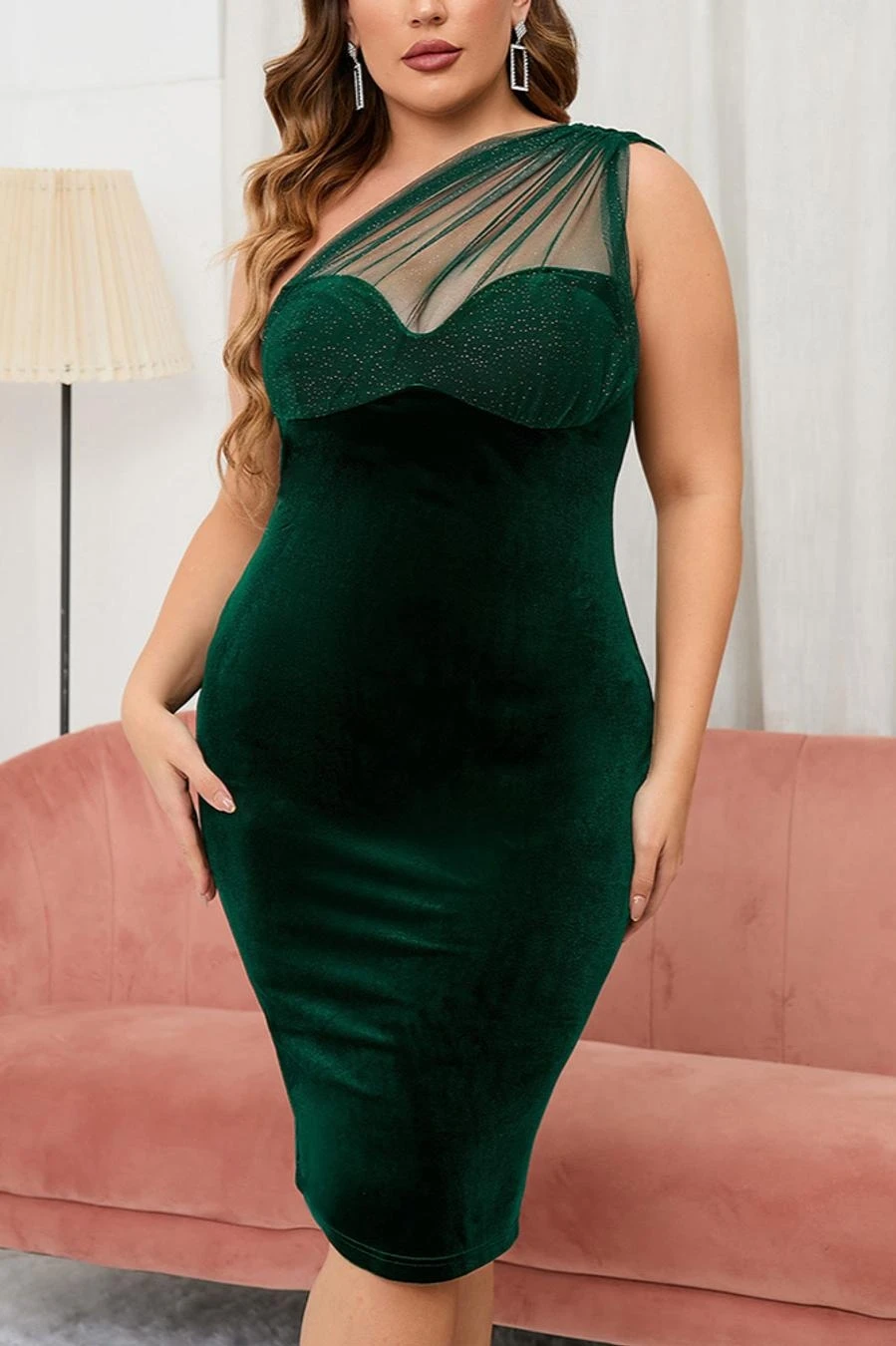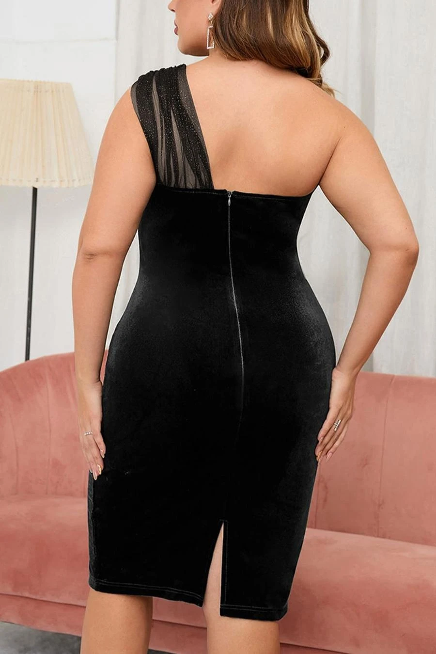 Plus size slight stretch velvet mesh zip-up slit underwire sexy midi dress