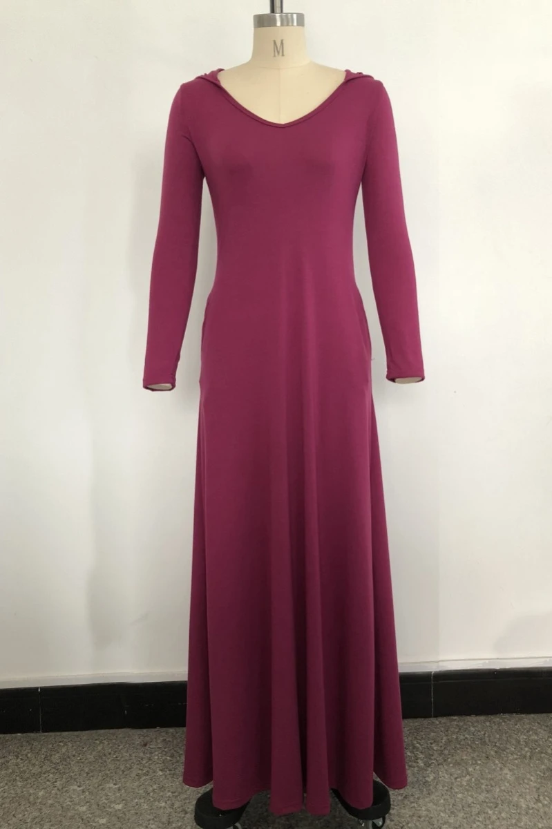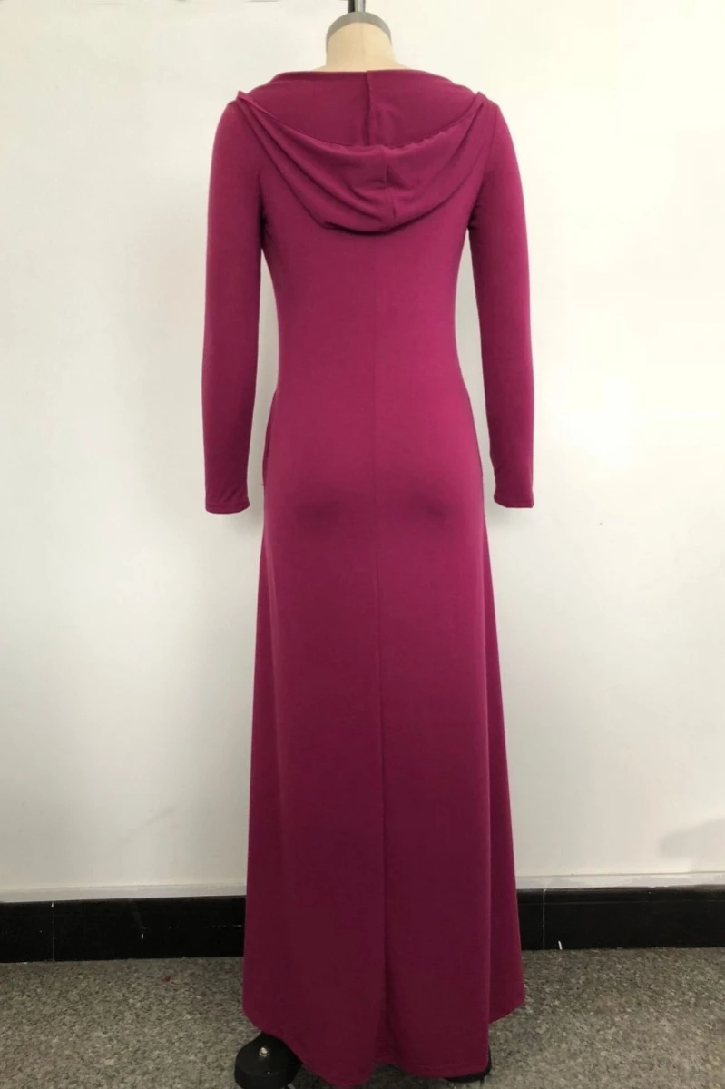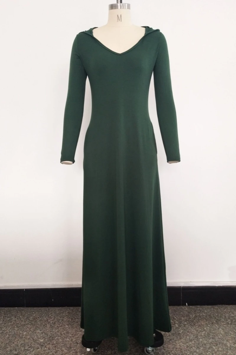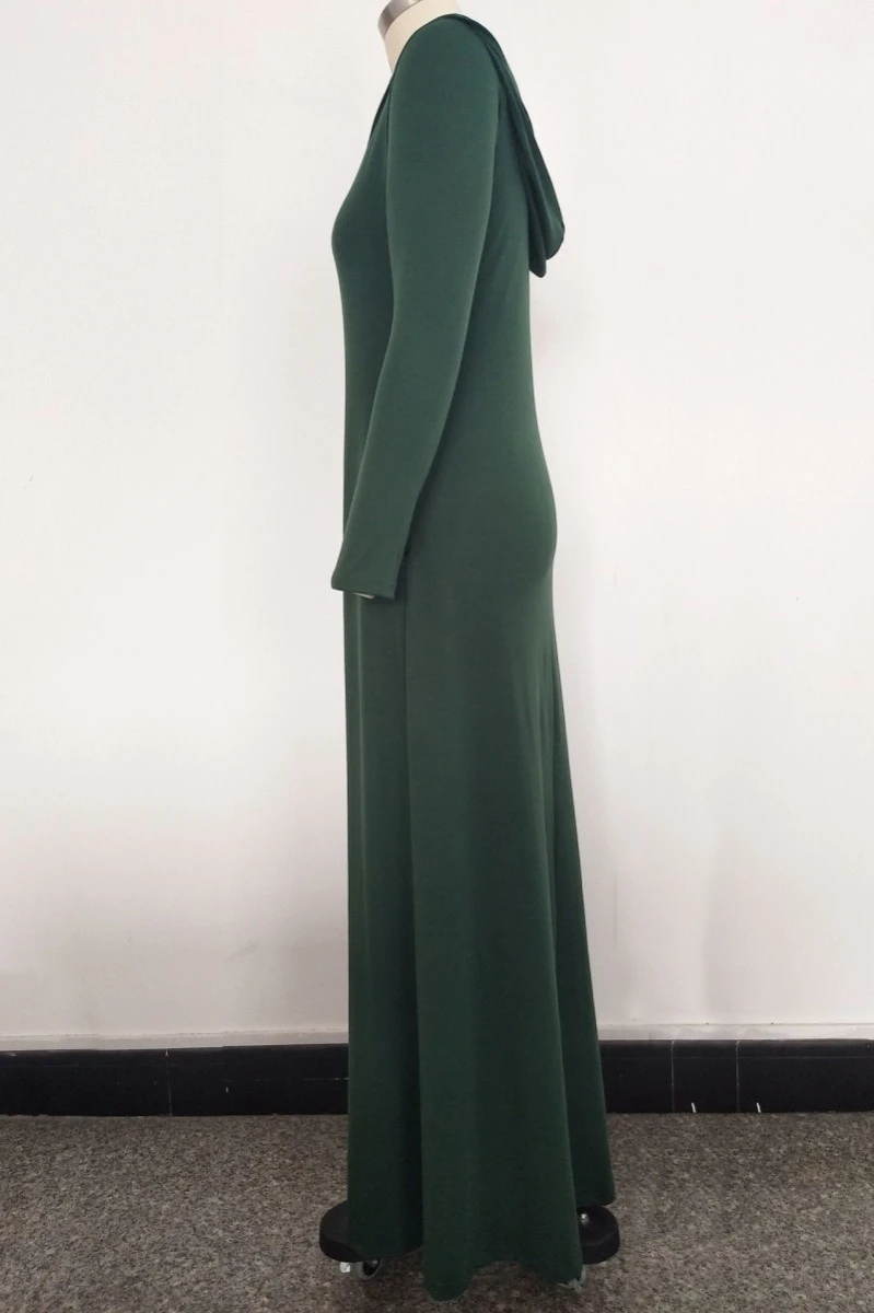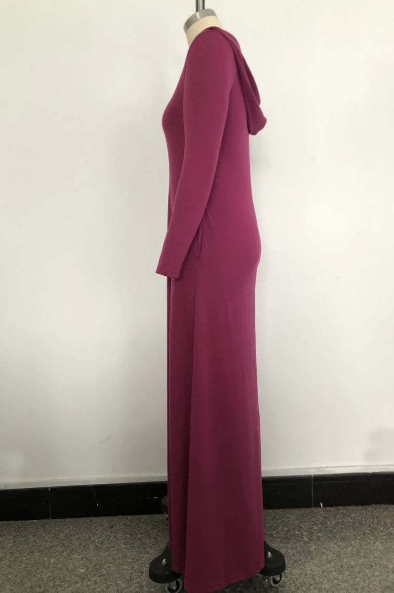 Plus size solid color stretch hooded pockets stylish casual loose dress
