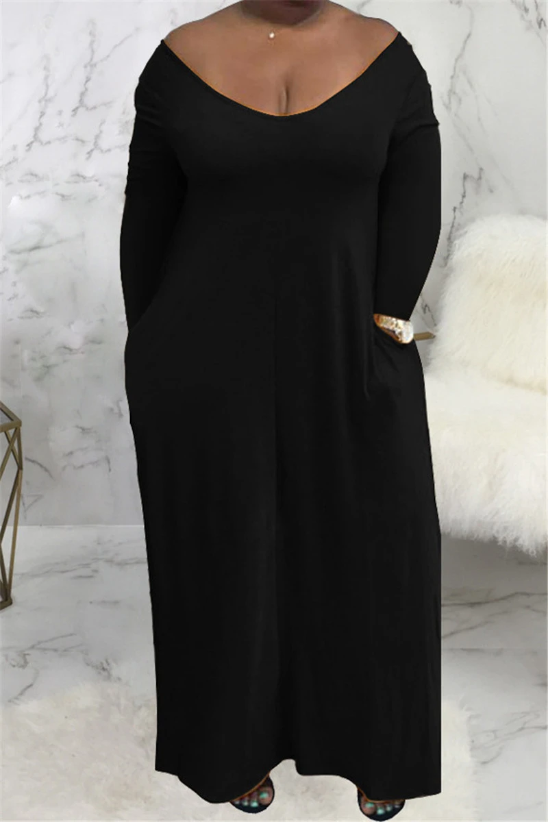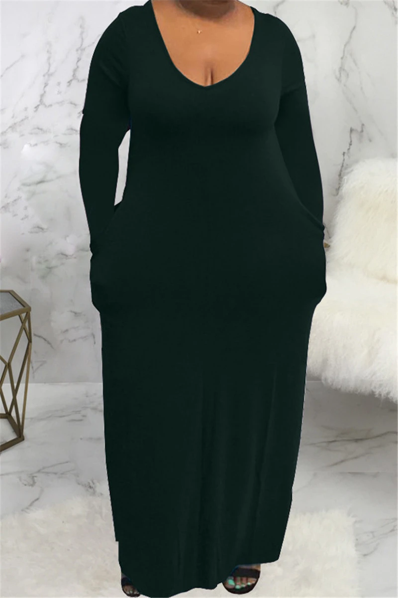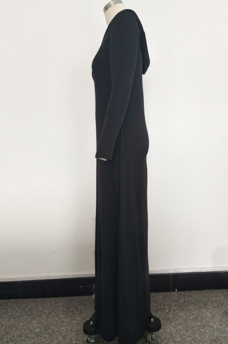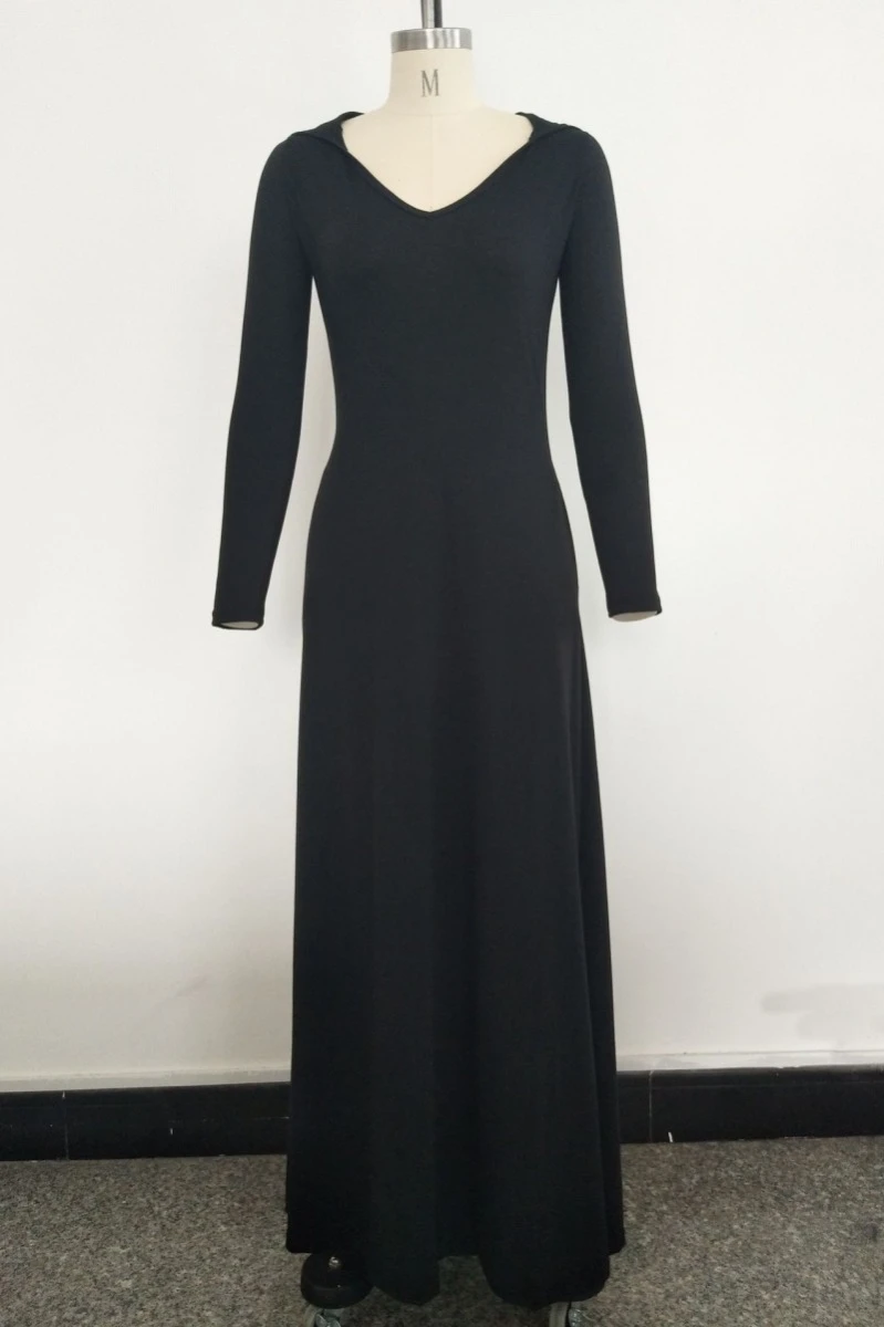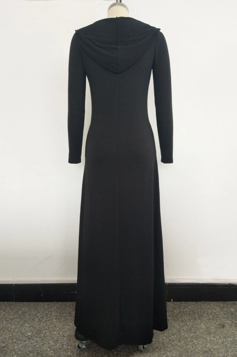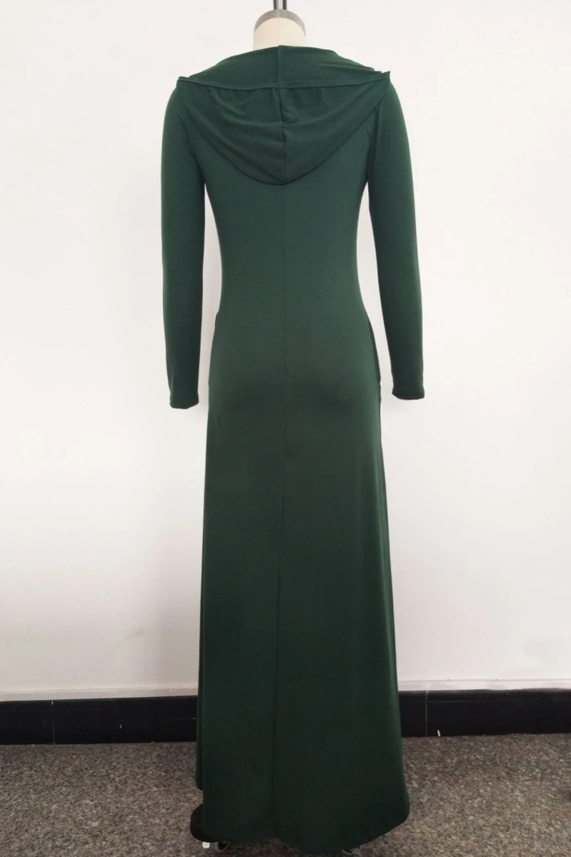 Plus size solid color stretch hooded pockets stylish casual loose dress