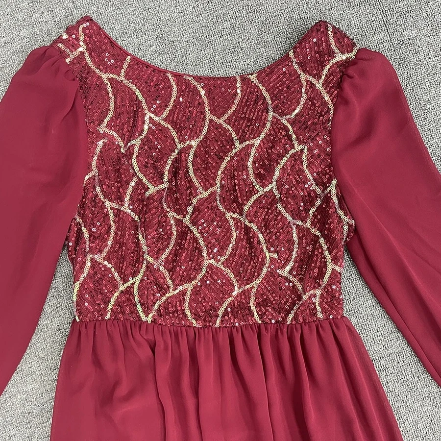 S-2XL plus size autumn new solid color micro elastic sequin zip-up high quality elegant maxi dress(with lining)