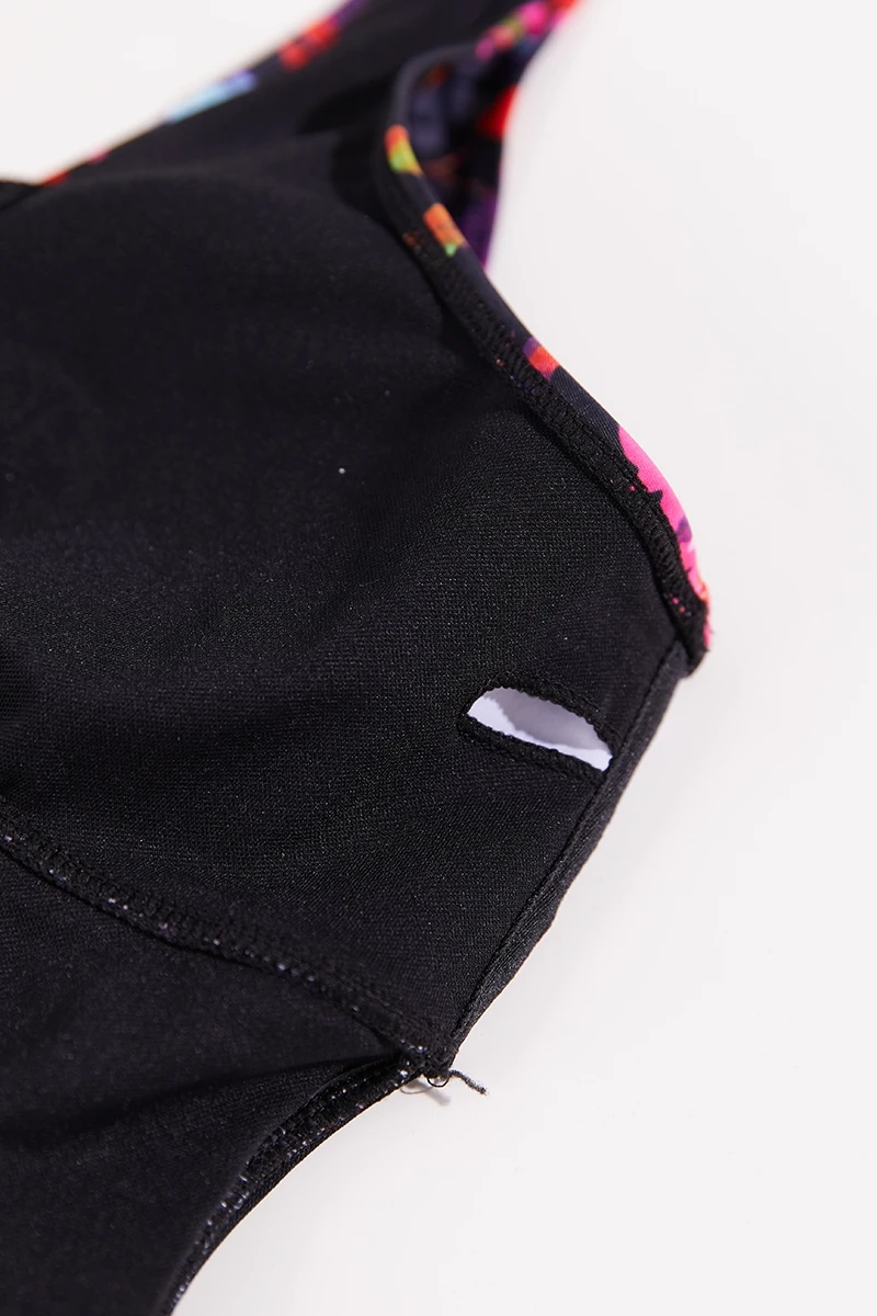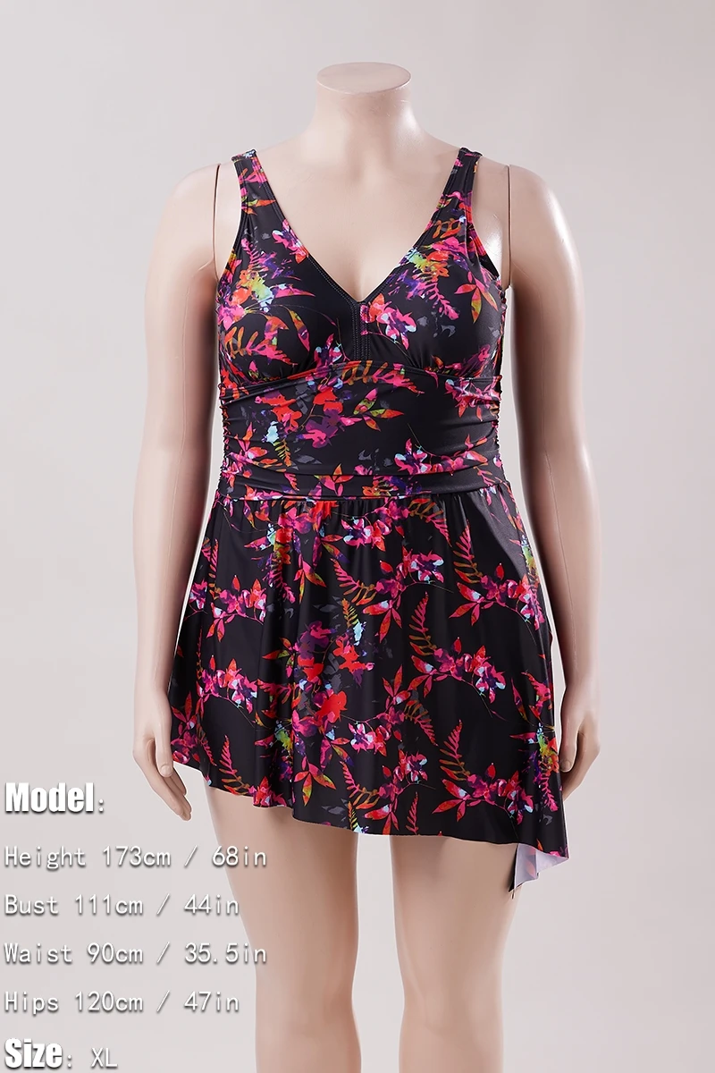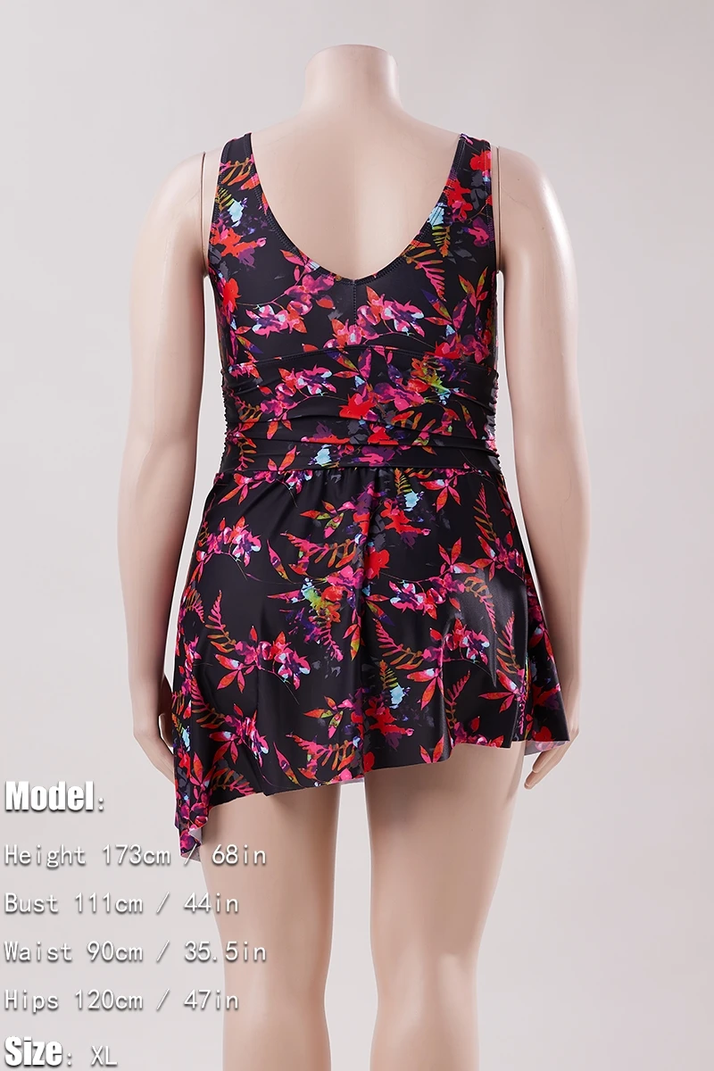 S-2XL plus size new padded flower & leaf batch printing split backless dress style sexy two-piece swimsuit