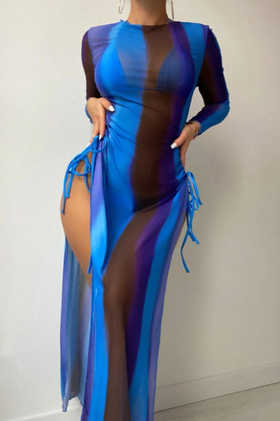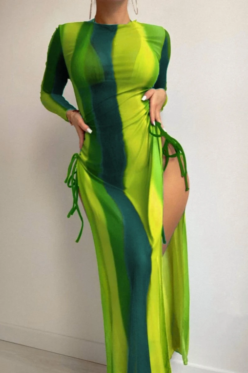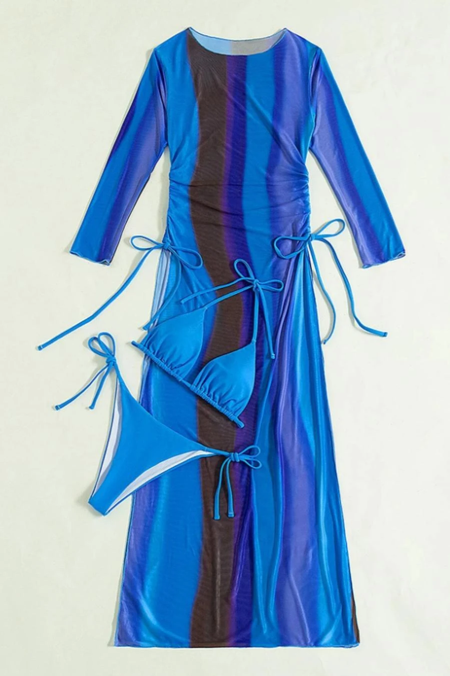 Sexy 5 colors gradient color padded halter-neck mesh dress three-piece swimsuit