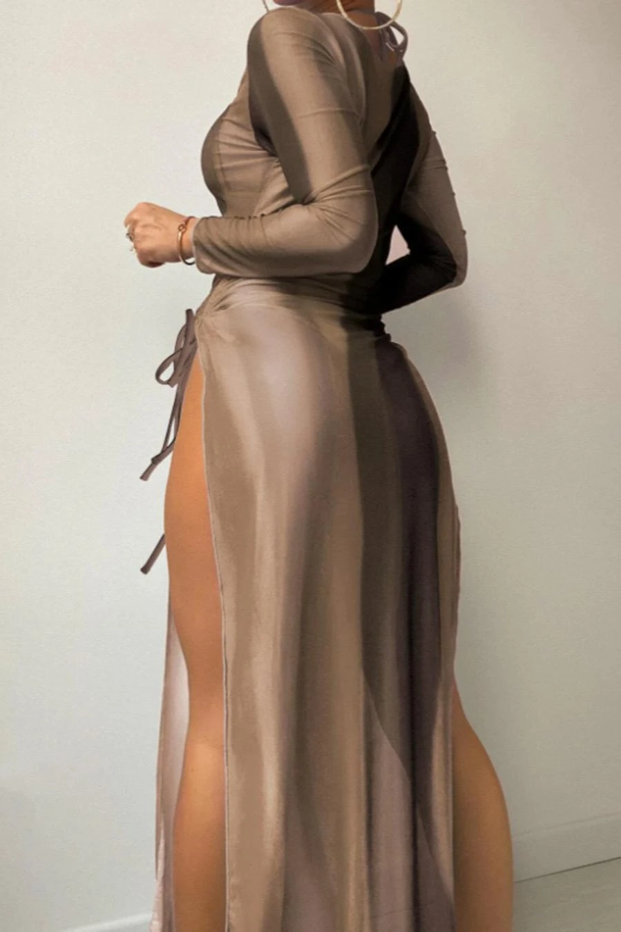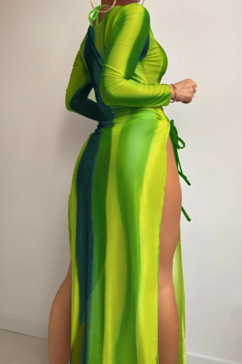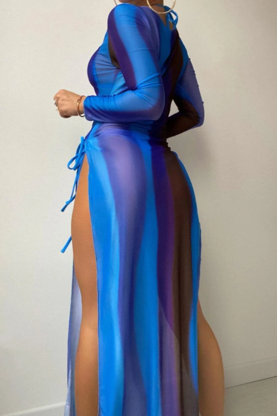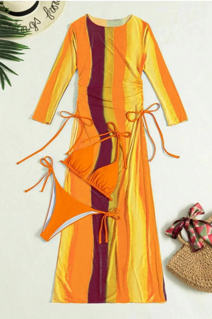 Sexy 5 colors gradient color padded halter-neck mesh dress three-piece swimsuit