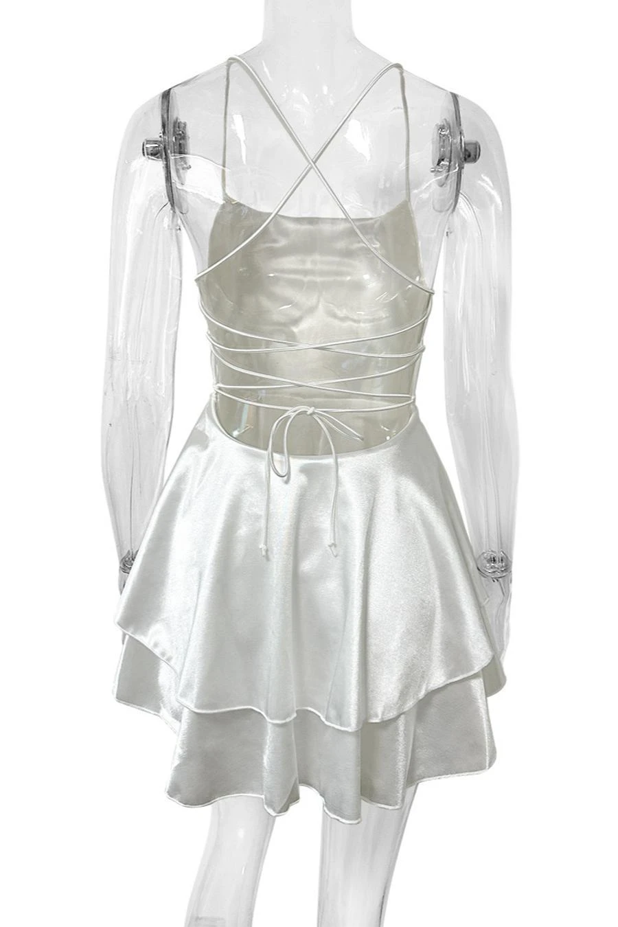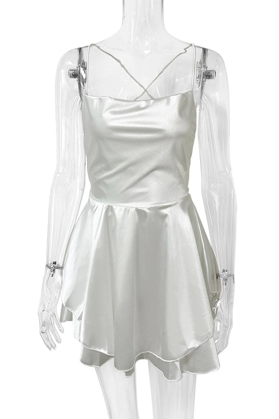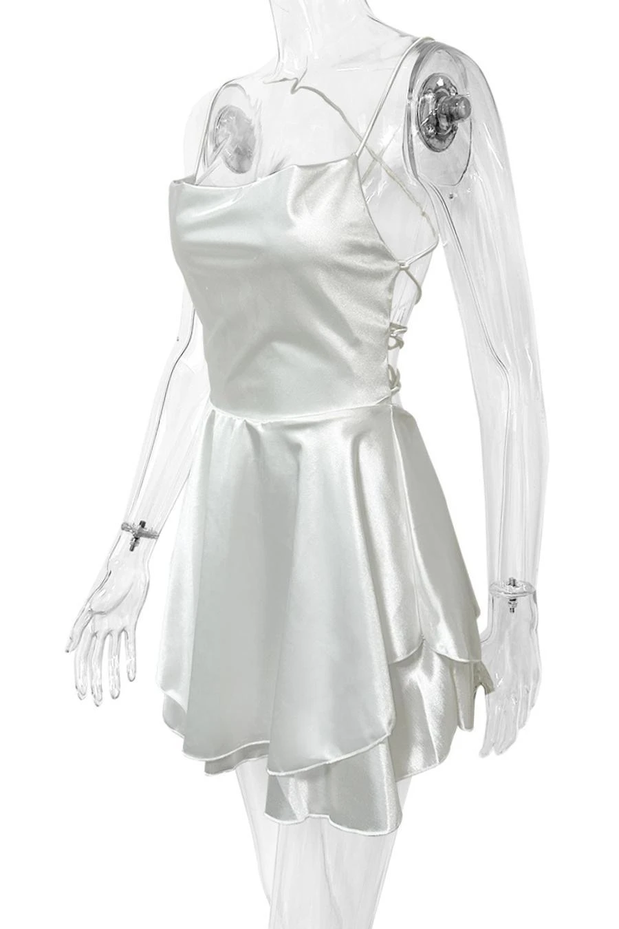 Sexy non-stretch solid color sling lace-up backless mini dress