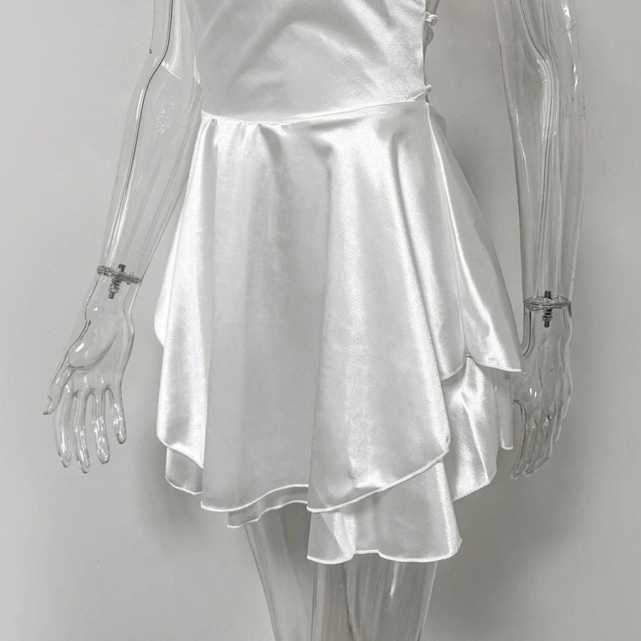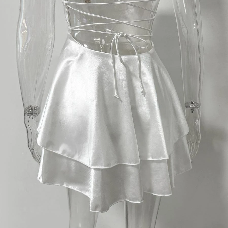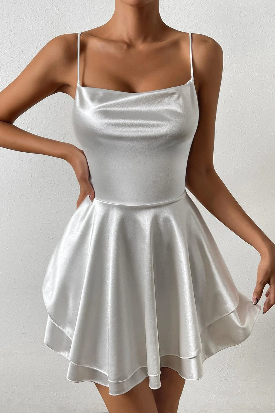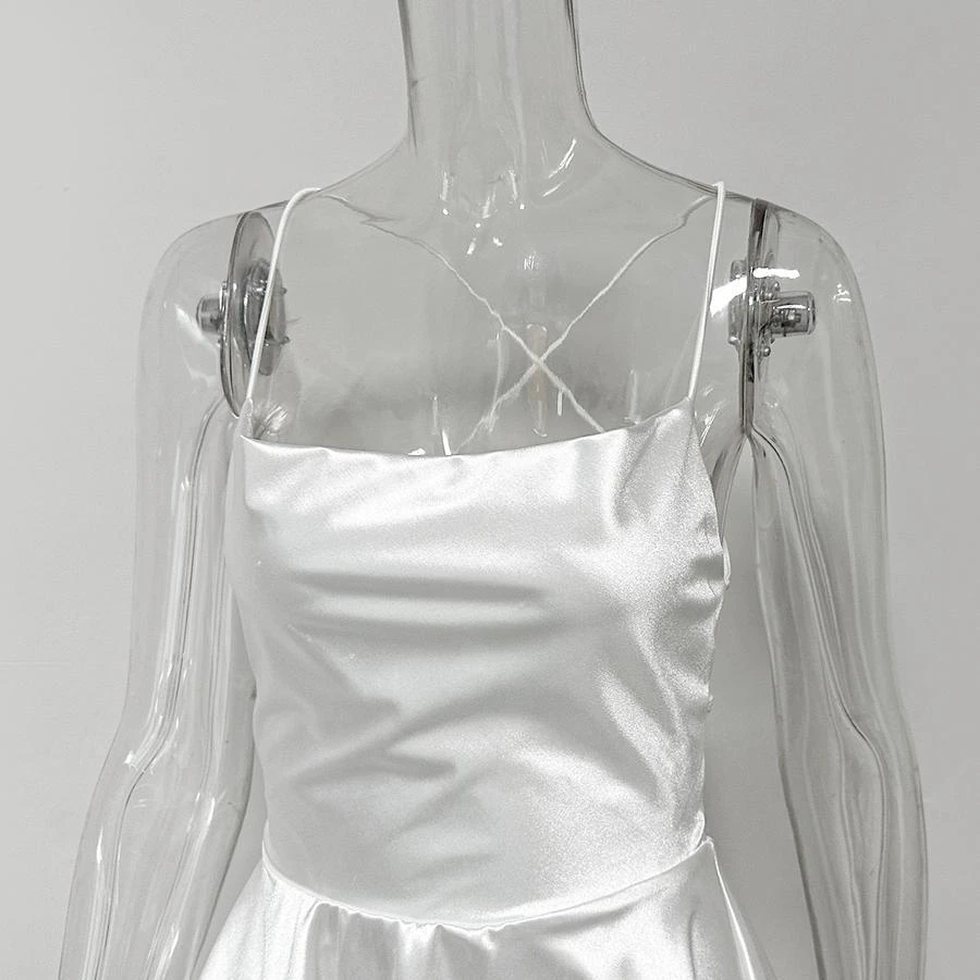 Sexy non-stretch solid color sling lace-up backless mini dress
