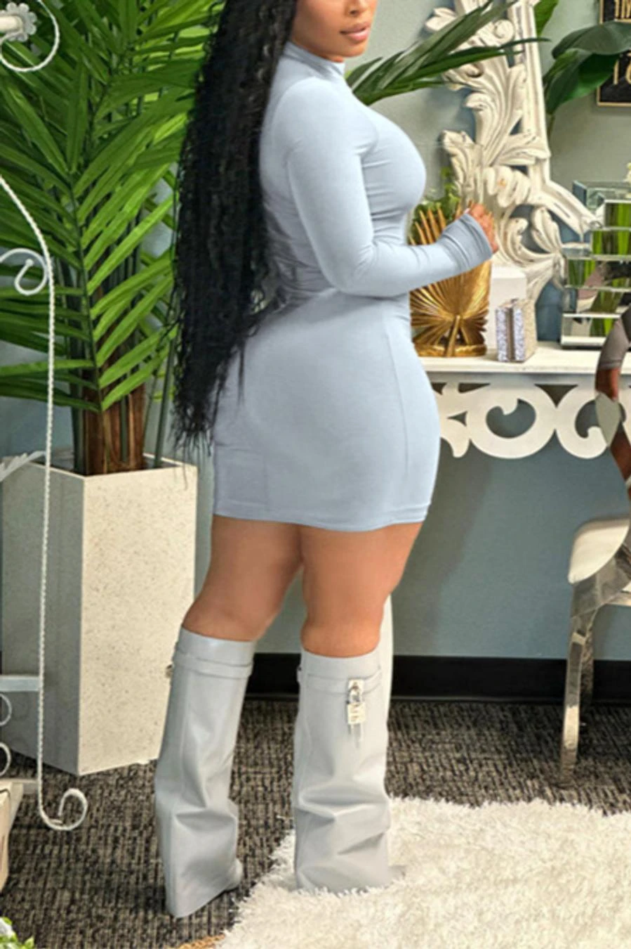 Sexy plus-size high stretch double sided velvet tight simple mini dress