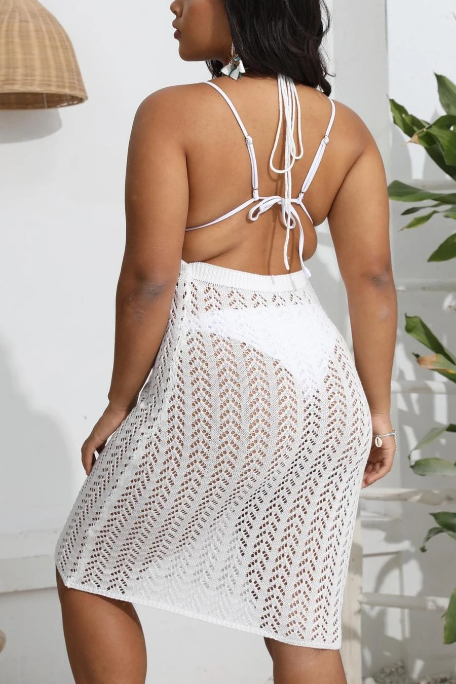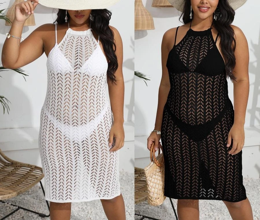 Sexy plus size hollow knitted halter-neck beach dress cover-ups(no underwear)
