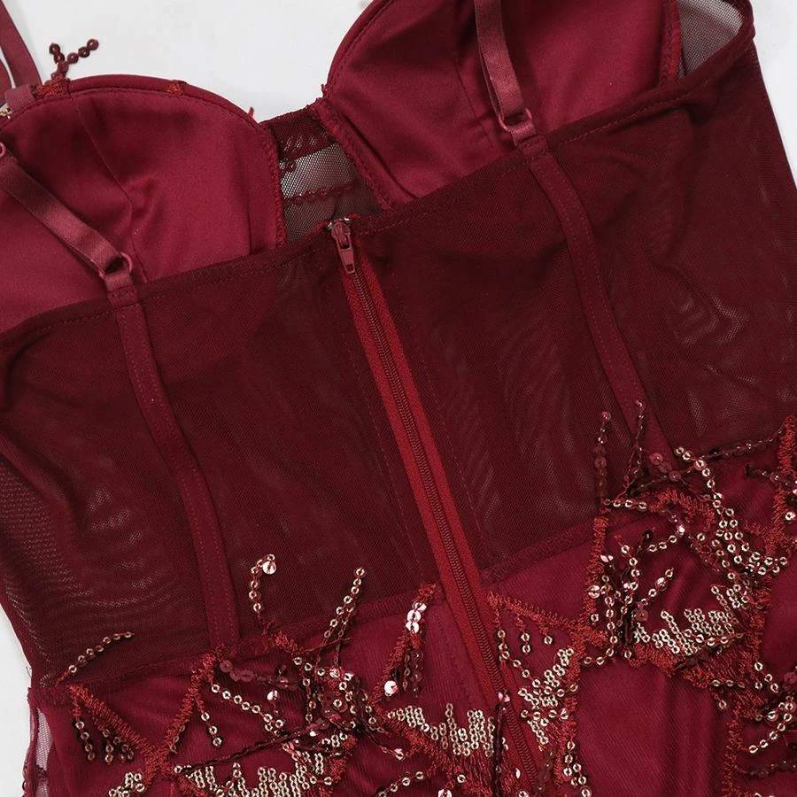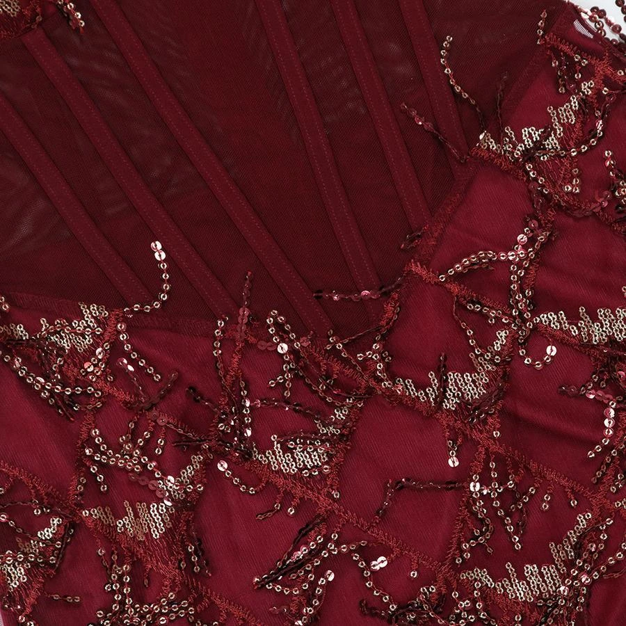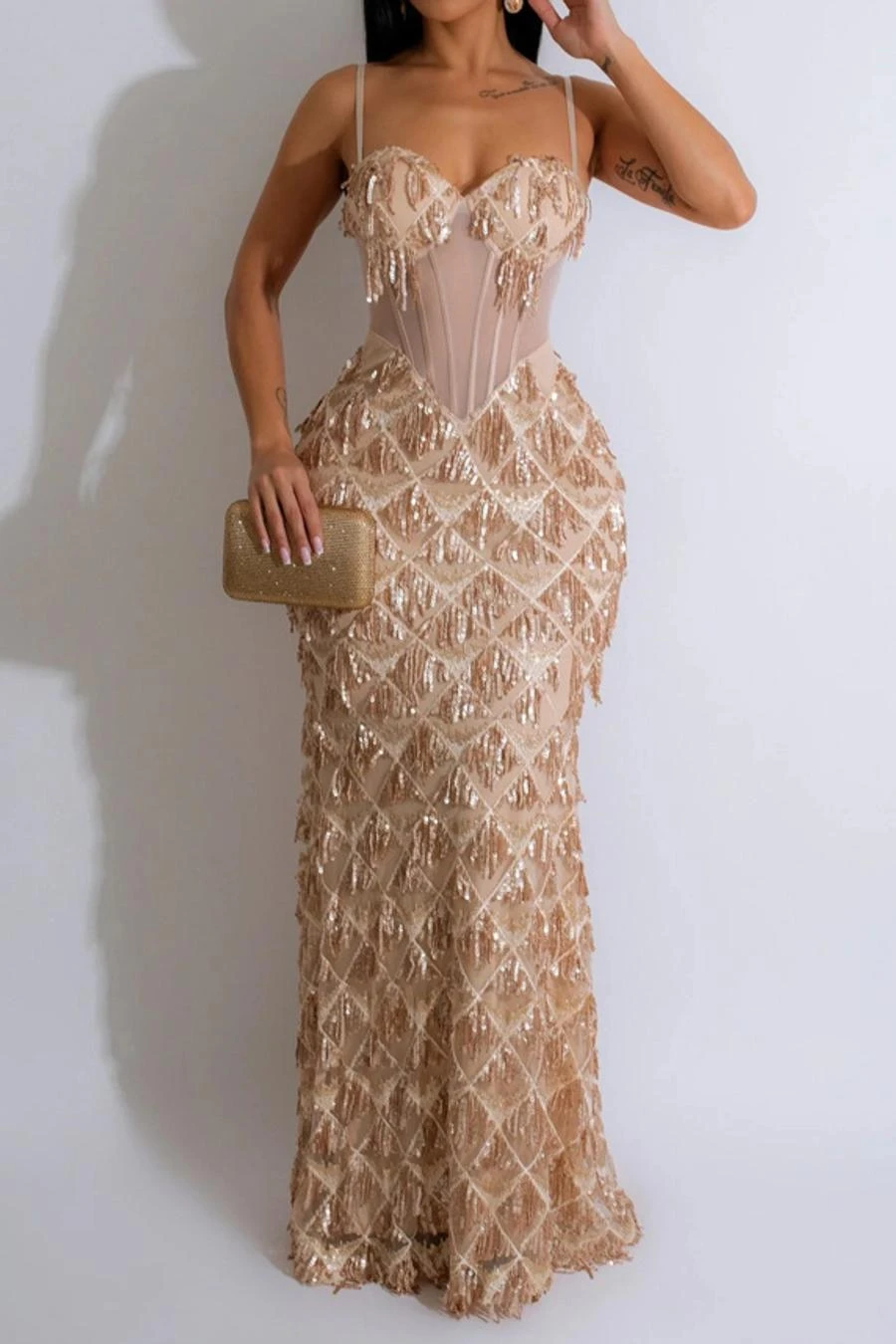 Sexy plus size slight stretch padded mesh sequins tassel sling maxi dress