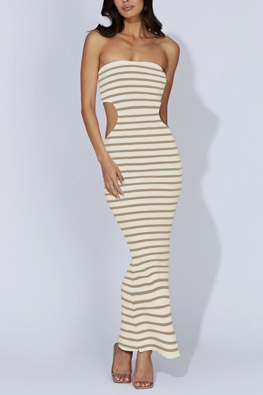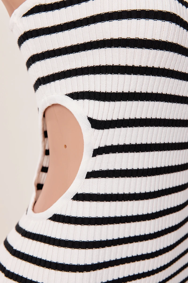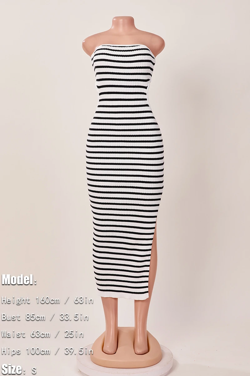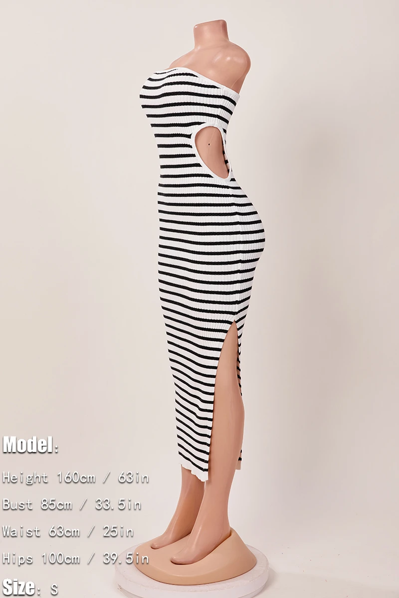 Sexy slight stretch stripe knitted tube design hollow slit maxi dress