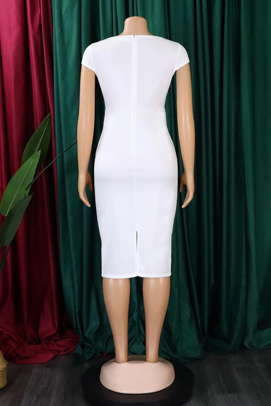 Stylish plus size 4 colors slight stretch short sleeve zip-up slim midi dress