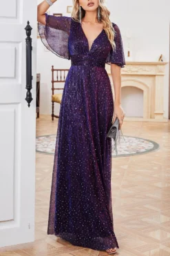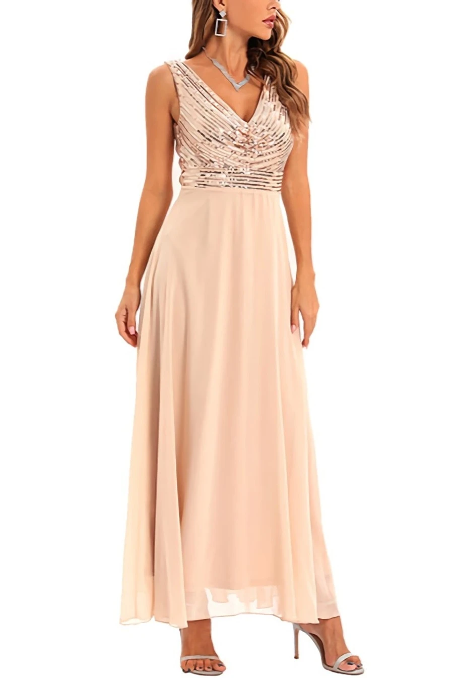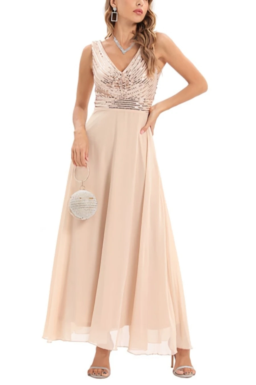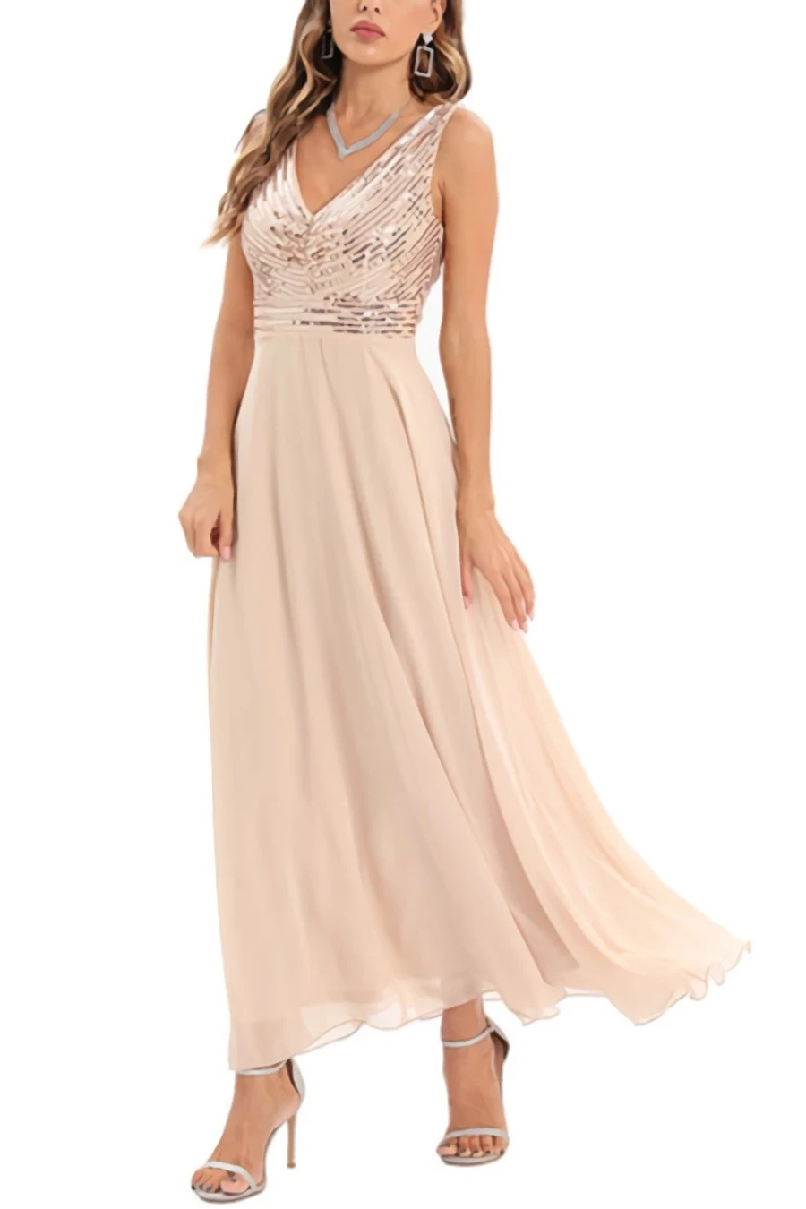 Summer new 2 colors sequin mesh patchwork stretch sleeveless v-neck swing stylish elegant maxi dress(with lining)