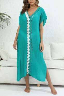 Sexy 2 Colors Hollow Crochet Tassel Halter-neck Dress Cover-ups(only Dress) Wholesale Cover-ups