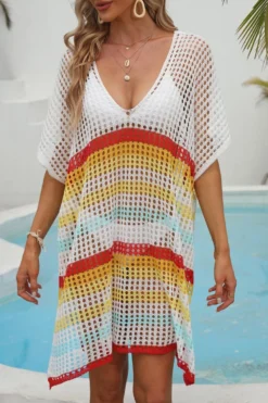 Sexy Cut Out Color-block Stripe Knitted V-neck Dress Cover-up(only Cover-up) Wholesale Cover-ups