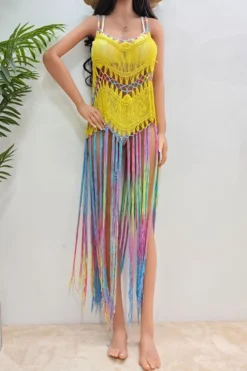Sexy Cut Out Rainbow Knitted Slit Side Beach Dress Cover-up(only Cover-up) Wholesale Cover-ups