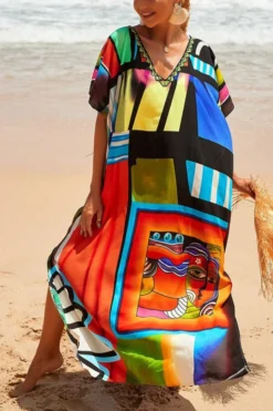 New Graphic Tropical Fixed Printing V-neck High-slit Sexy Beach Dress Cover-ups Wholesale Cover-ups