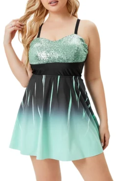 Plus Size Gradient Printing Padded Strappy Dress Style Tankini Set Wholesale Two-Piece