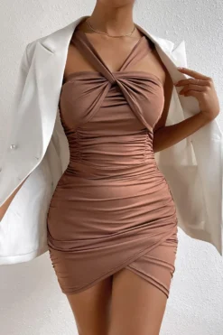 XS-L Sexy Slight Stretch Pure Color Hollow Twist Lace-up Midi Dress Wholesale Tank & Cami Dresses