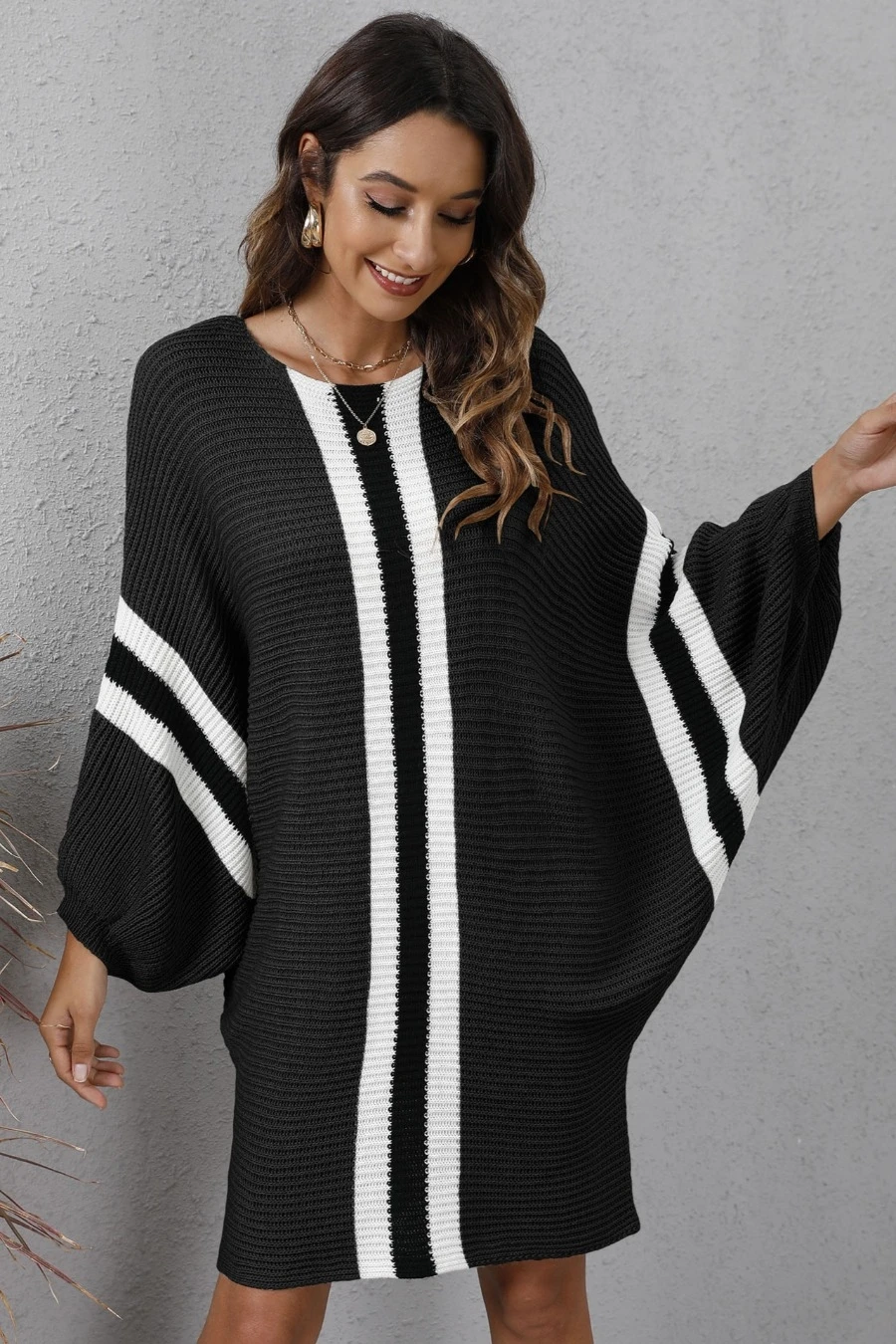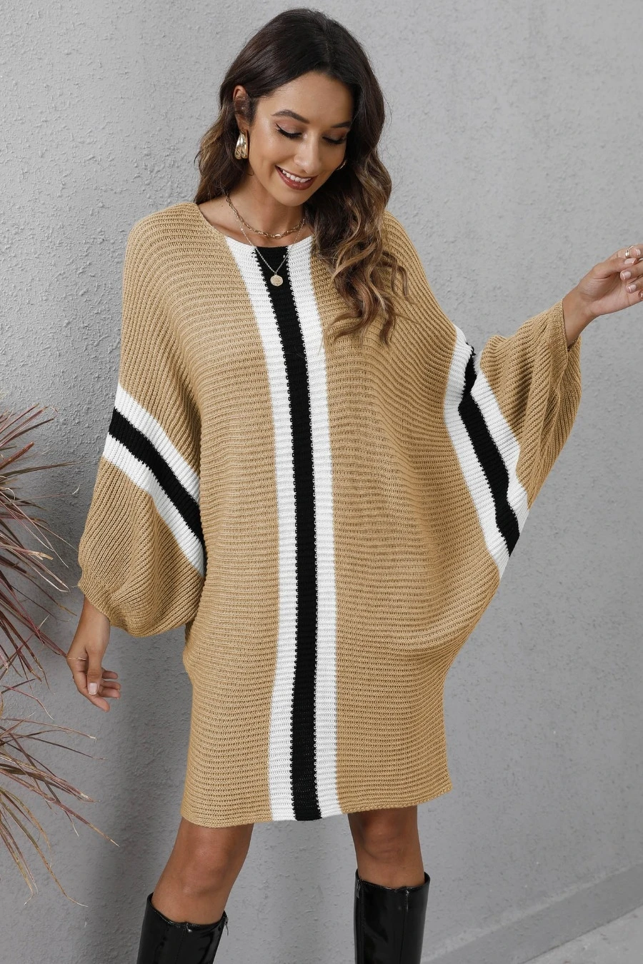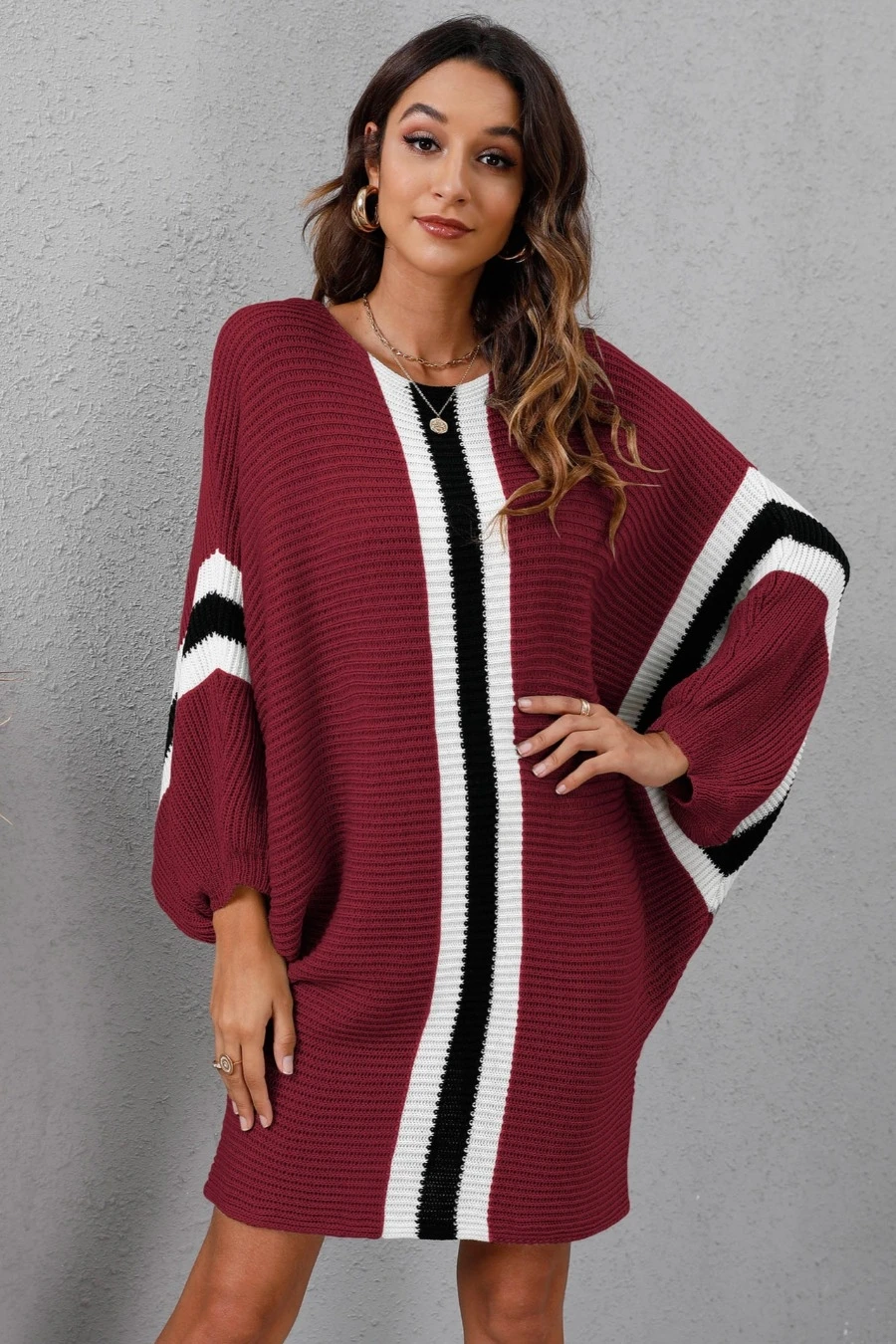 Winter four colors knitted stretch batwing-sleeve casual stylish sweater dress
