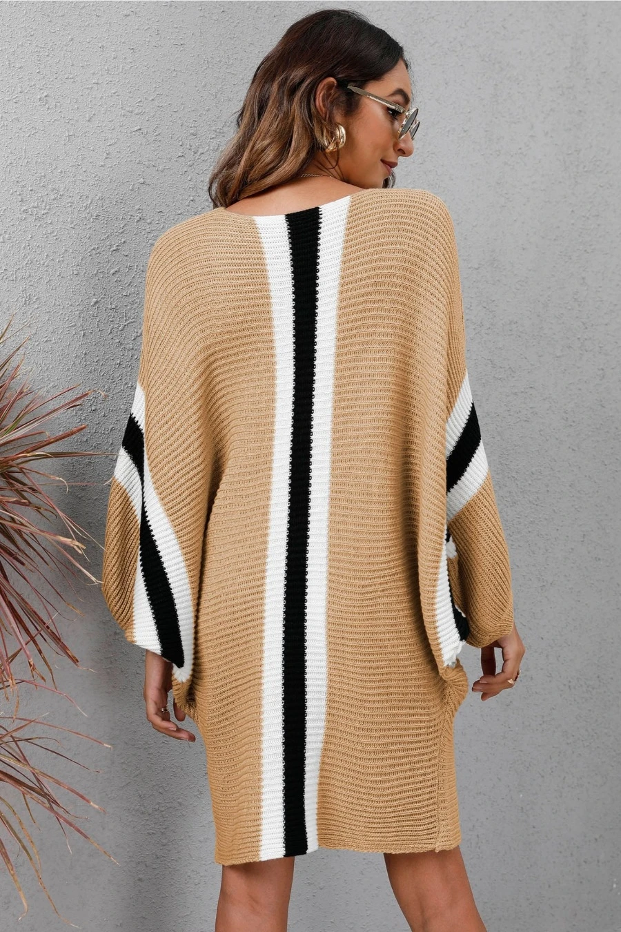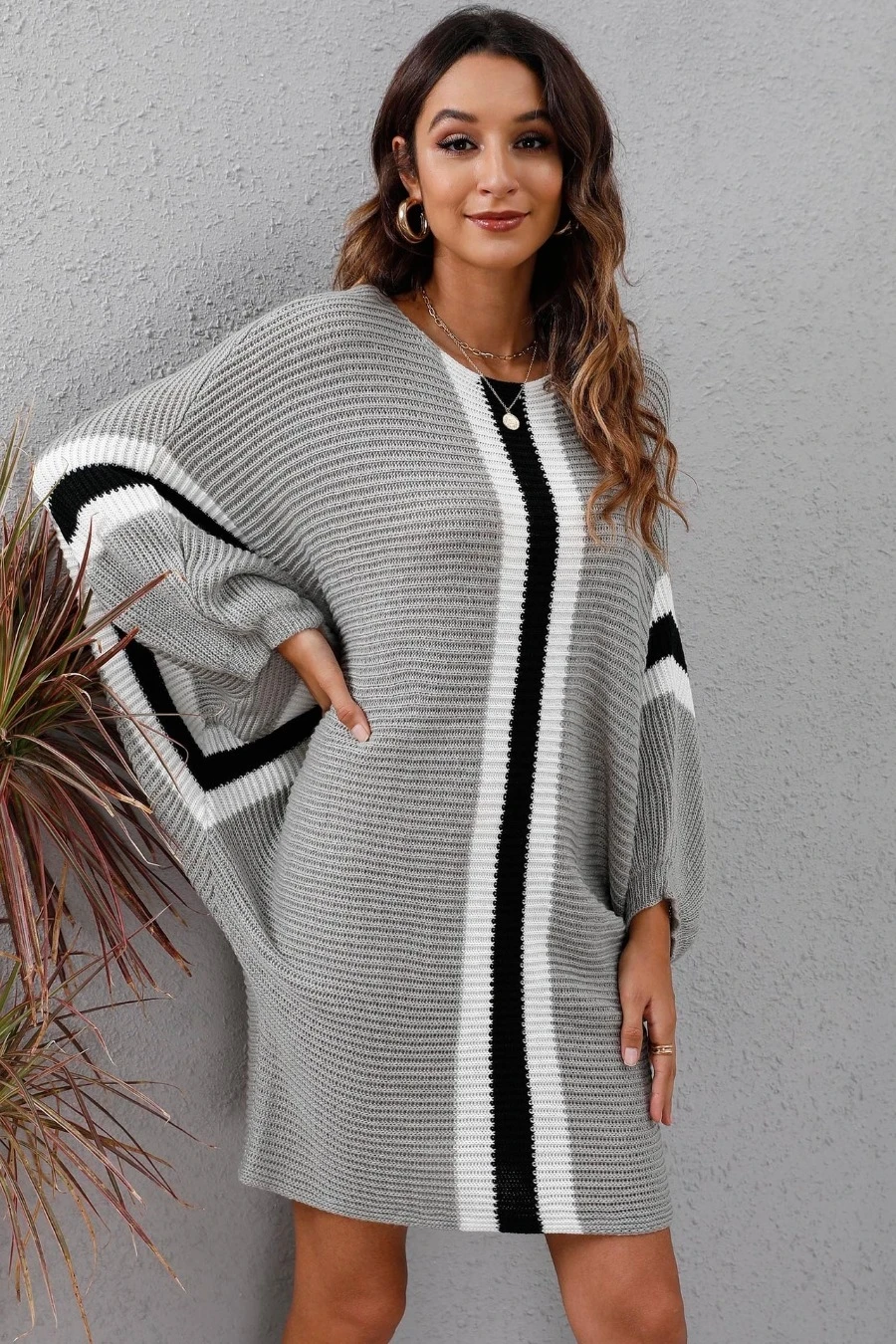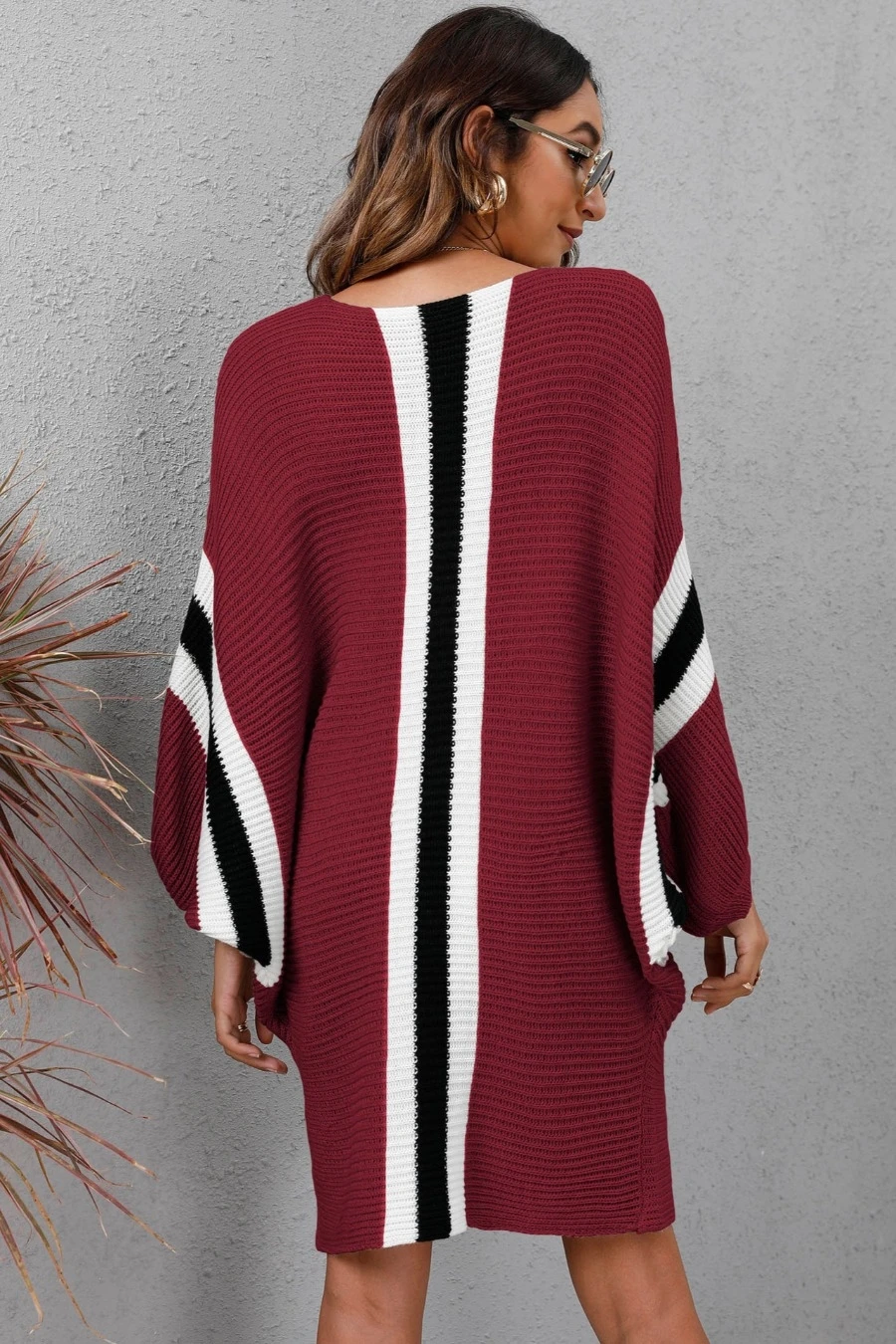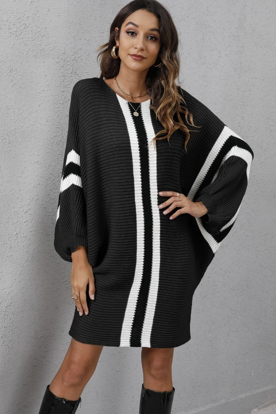 Winter four colors knitted stretch batwing-sleeve casual stylish sweater dress