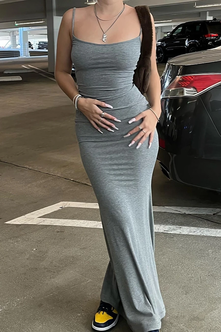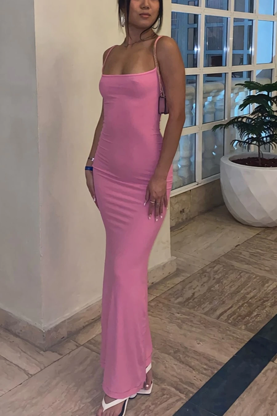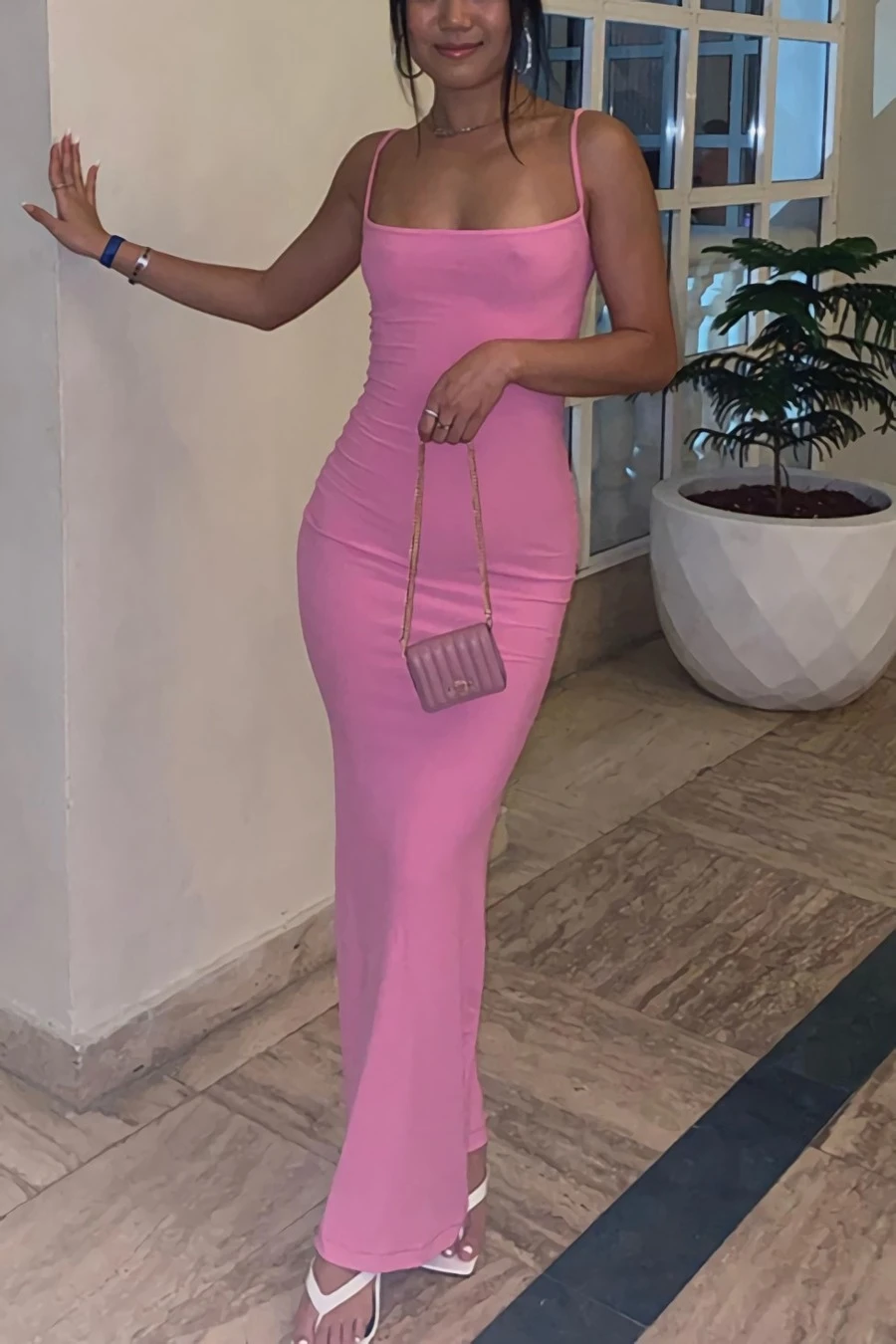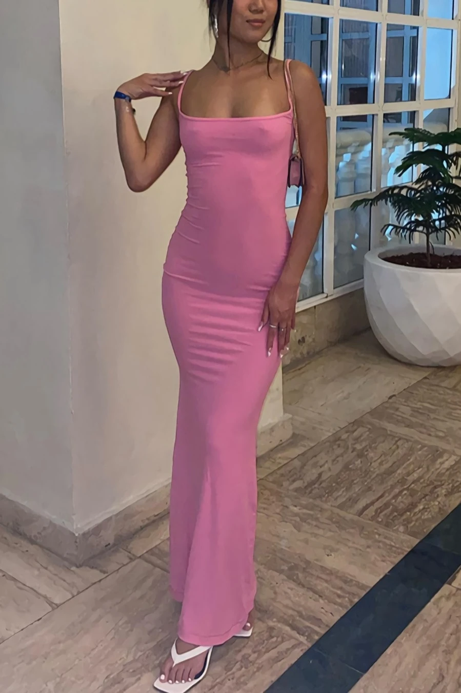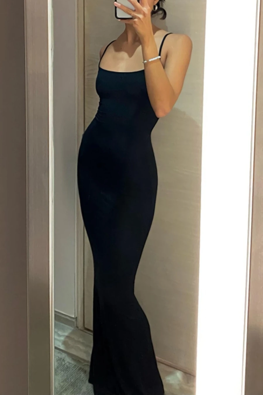 XS-L summer new stylish stretch slim solid color sling backless sexy maxi fishtail dress(AA005138)